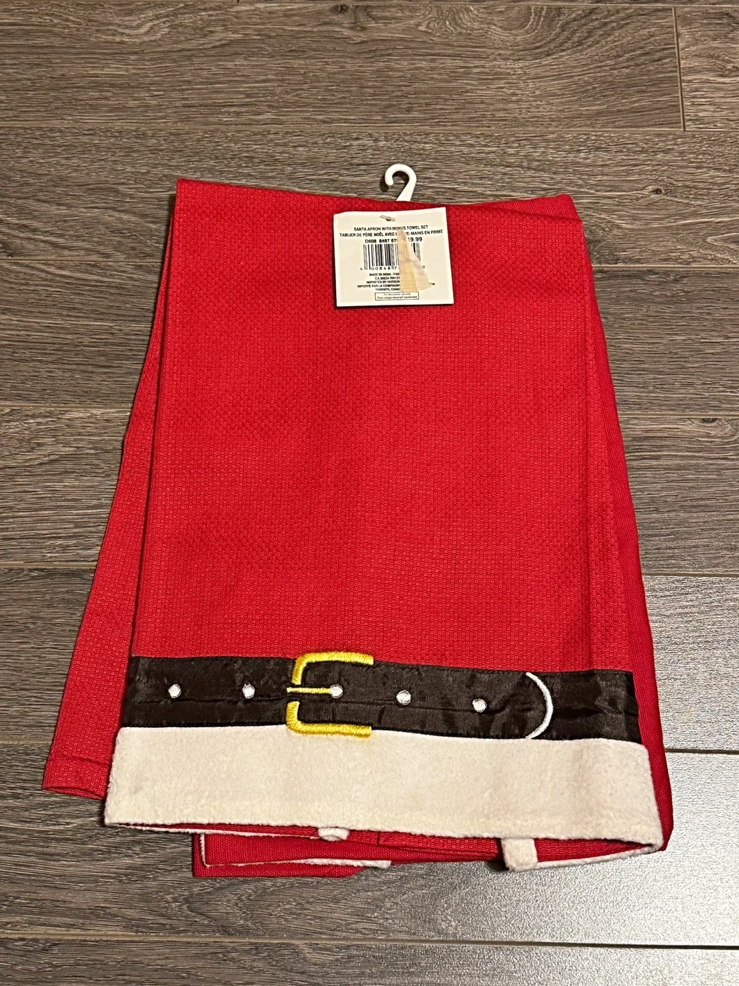 Selling a cute Santa apron with a bonus towel set! It's in great condition and ready to add some festive cheer to your kitchen this holiday season.