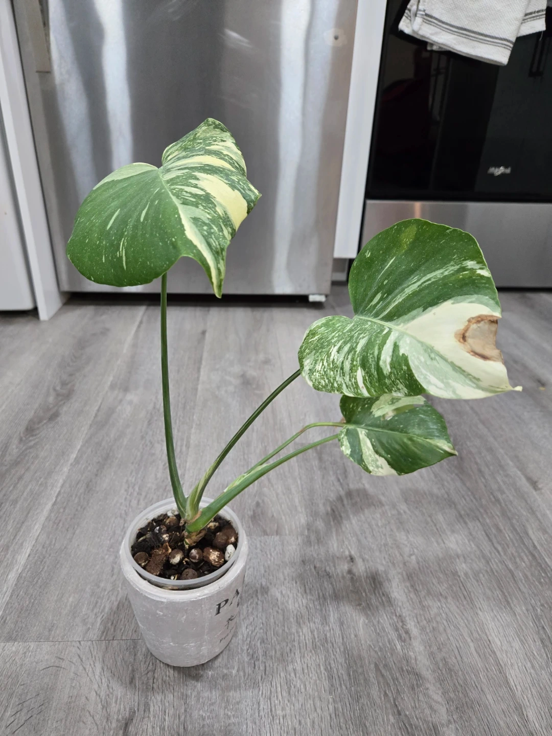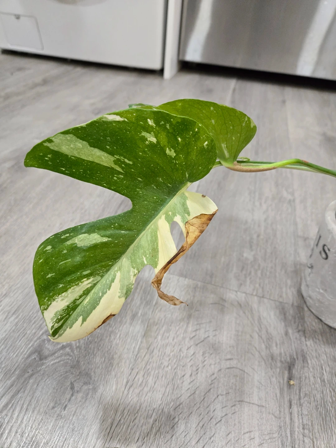 A Thai Monstera. The plant has some browning, as shown in the photos. So needs a little tlc and a new green lingered home.