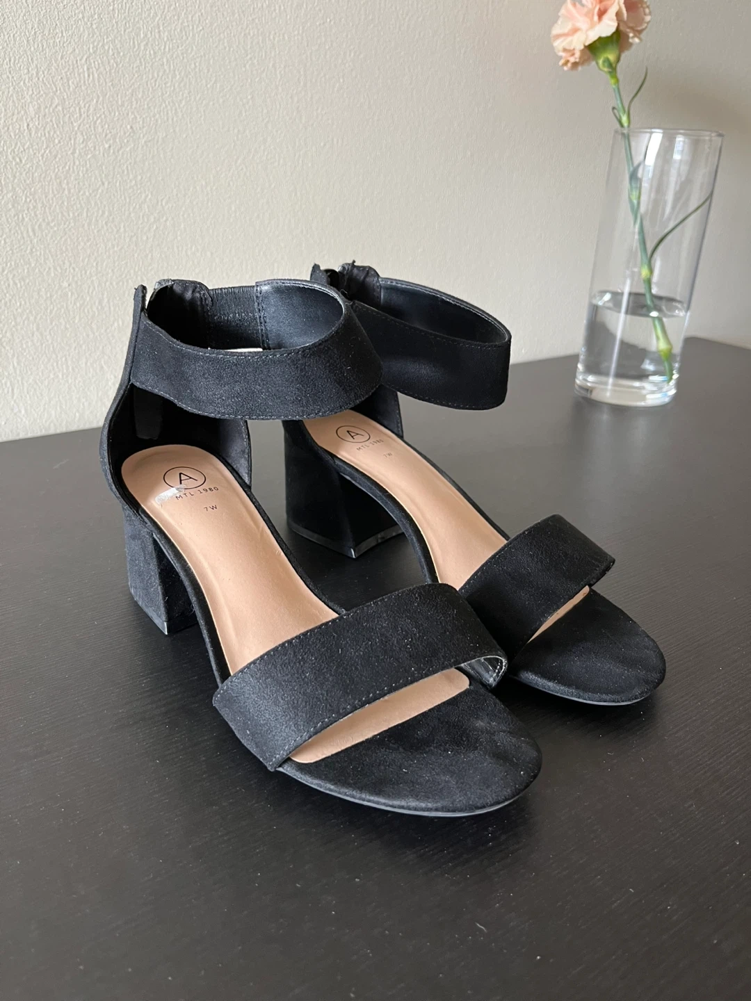 Selling a pair of black heels in size 8. These heels are in great condition and would be a stylish addition to any wardrobe!