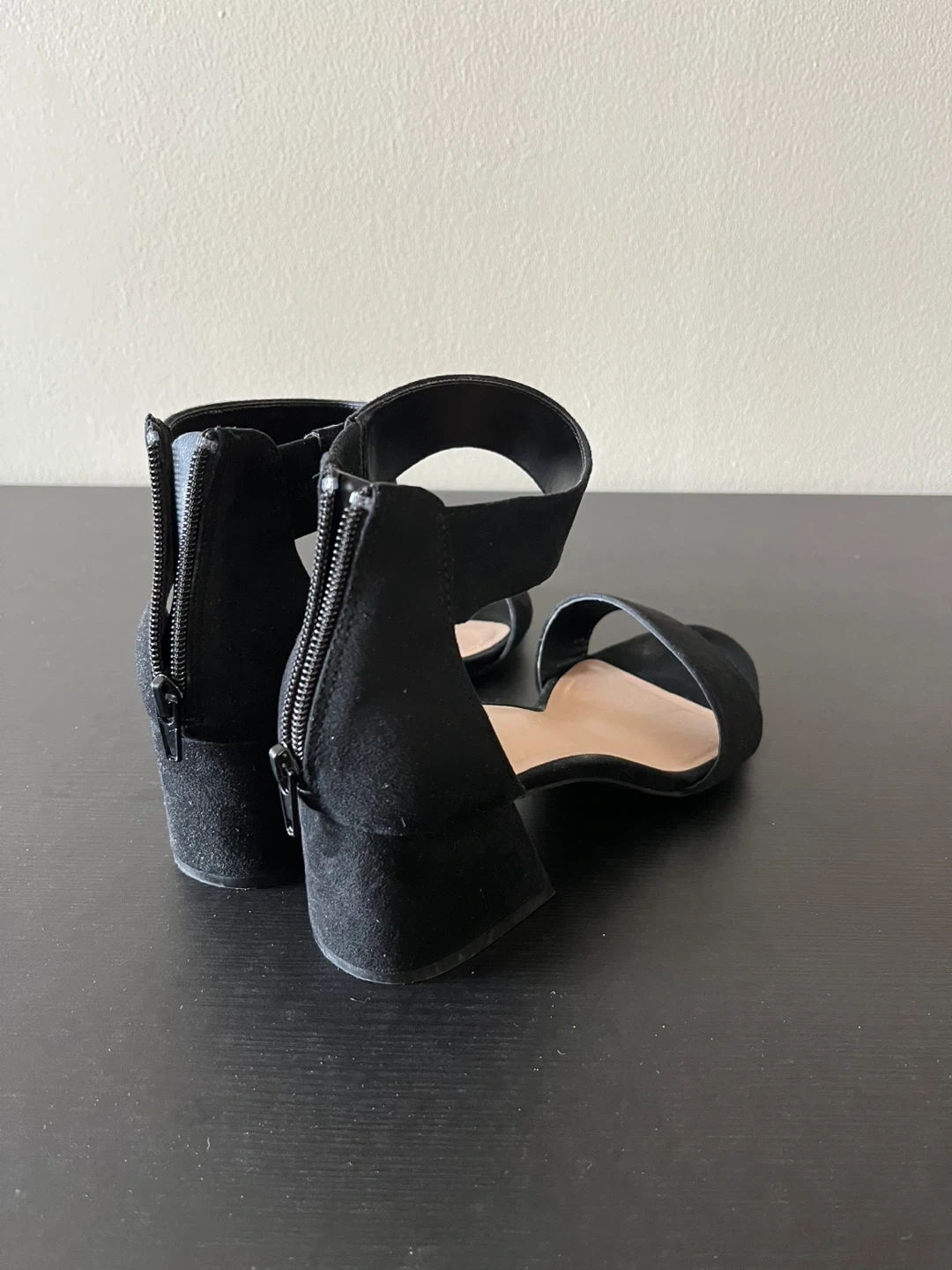 Selling a pair of black heels in size 8. These heels are in great condition and would be a stylish addition to any wardrobe!