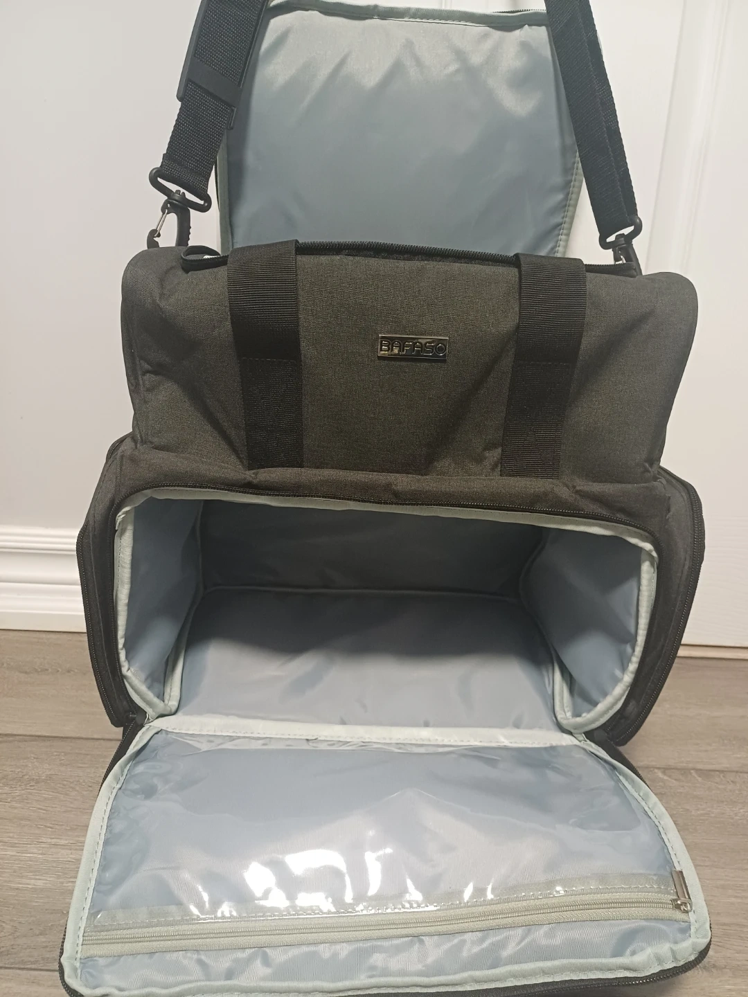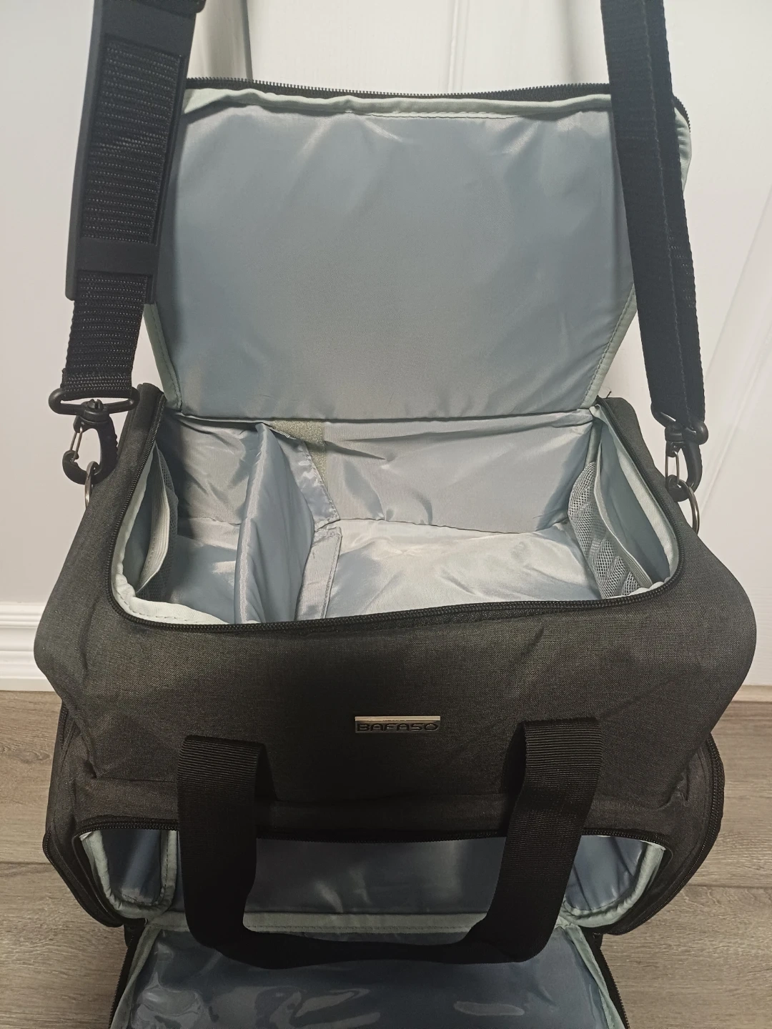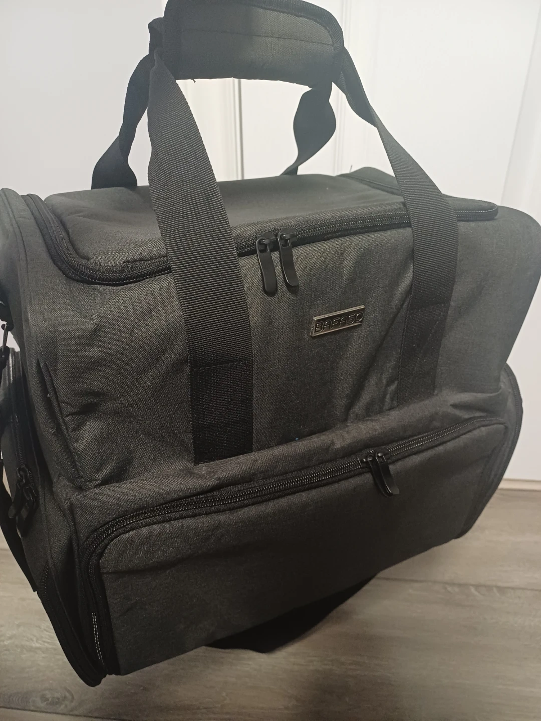 This brand new... BAFASO professional makeup train case/double layer Nail polish organizer is perfect for organizing and transporting your cosmetics. It features multiple compartments and adjustable dividers to customize the storage space. The case is made of durable material and has a sturdy handle and shoulder strap for easy carrying. Great for makeup artists or anyone who wants to keep their makeup organized!