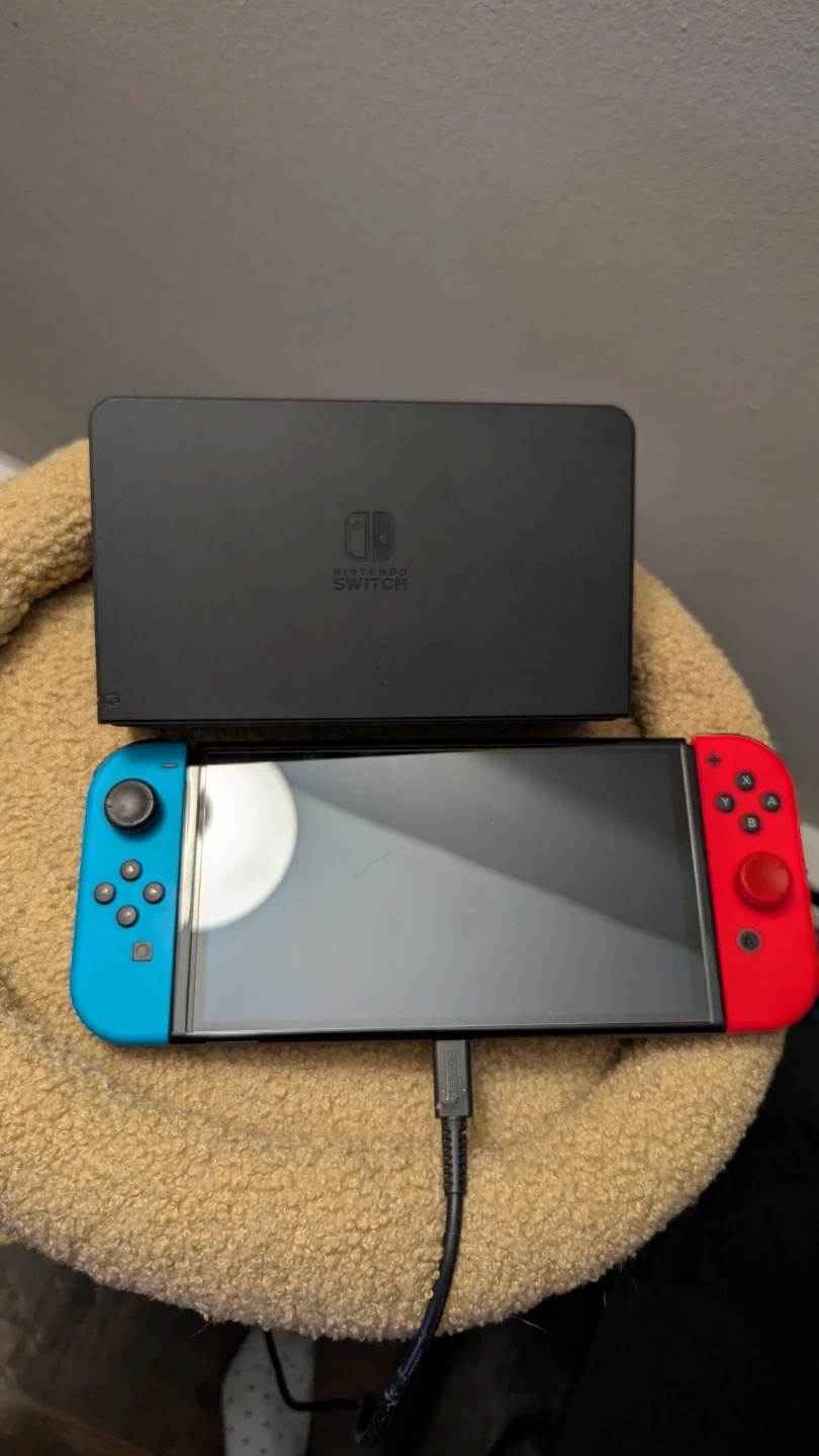 Selling a Nintendo Switch OLED 1. Comes with the switch, charging dock and a cable. Everything is in good condition but the cable has some nibble marks from my cats
