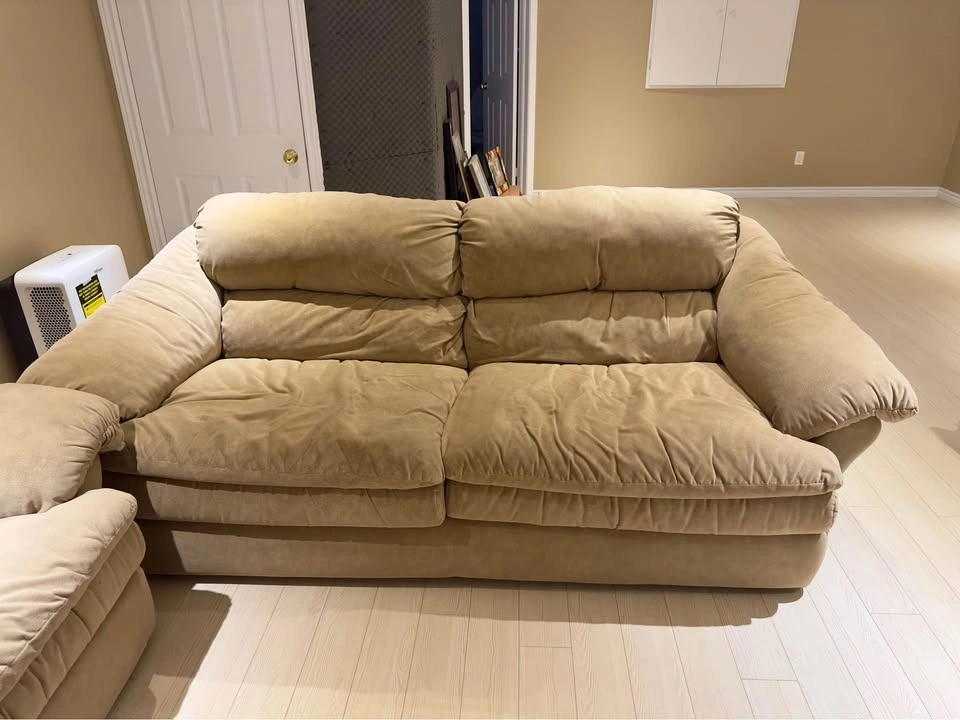 This set of couch has been used in the basement and is in good overall condition. There is a small tear on one spot, but it isn’t visible from the front unless the fabric is pulled out. Pick up only at Elgin mills and Woodbine area.