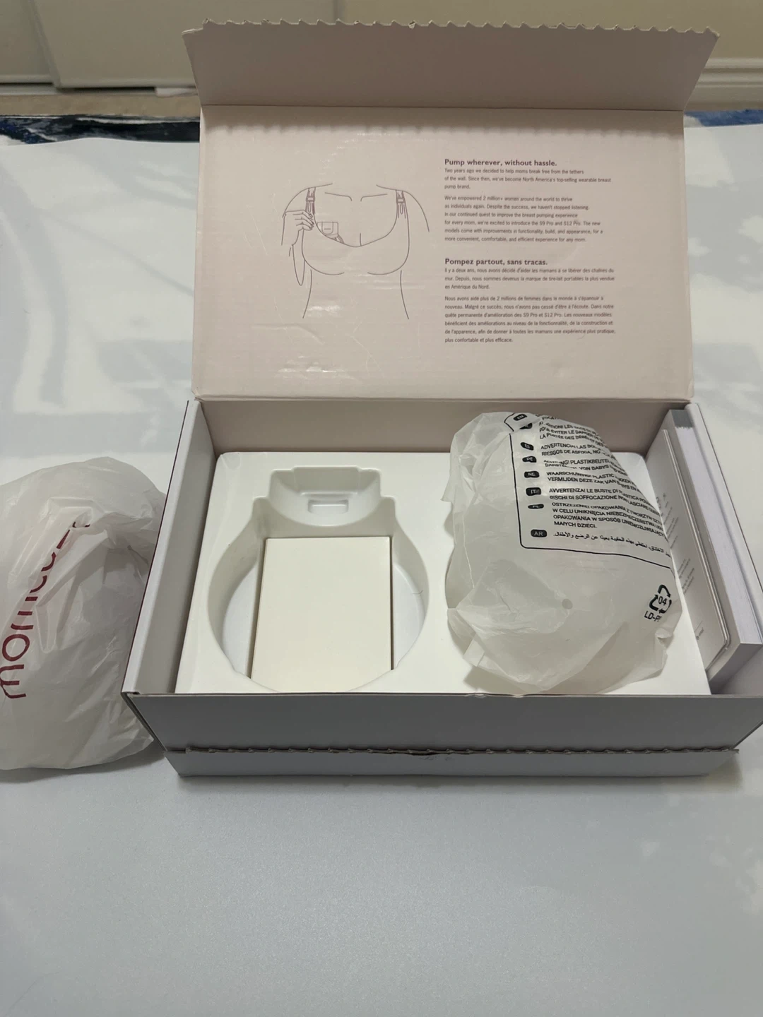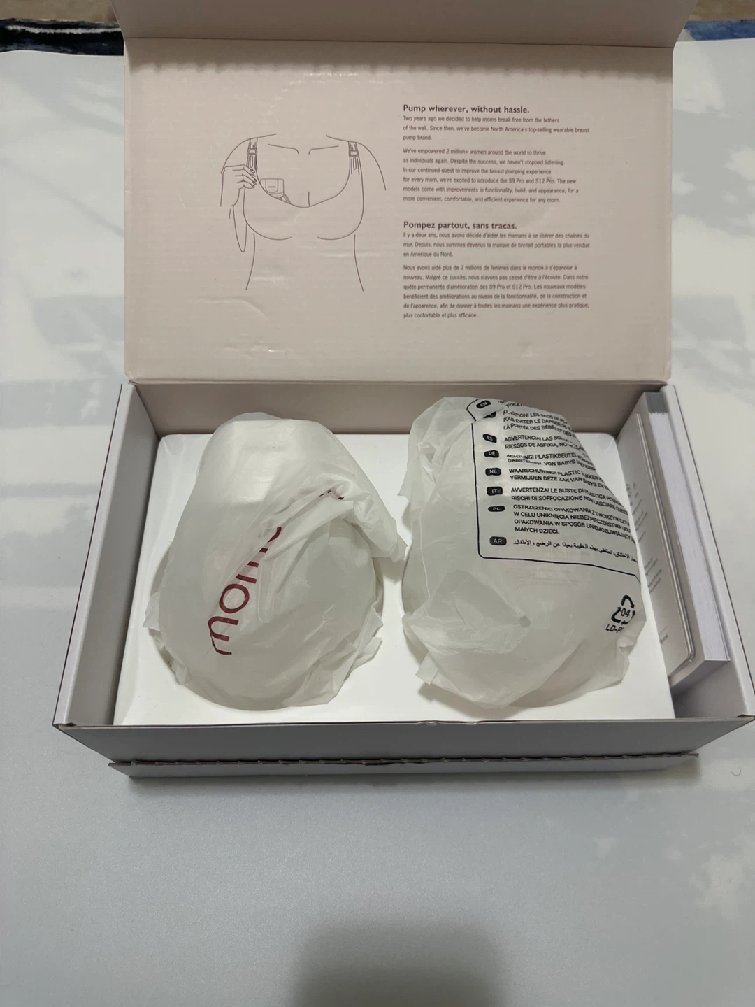 Selling a brand new Momcozy S12 Pro wearable breast pump! It's still in its original box and has never been used. This is a tire-lait portable model, perfect for busy moms on the go. Comes with all original components and packaging!