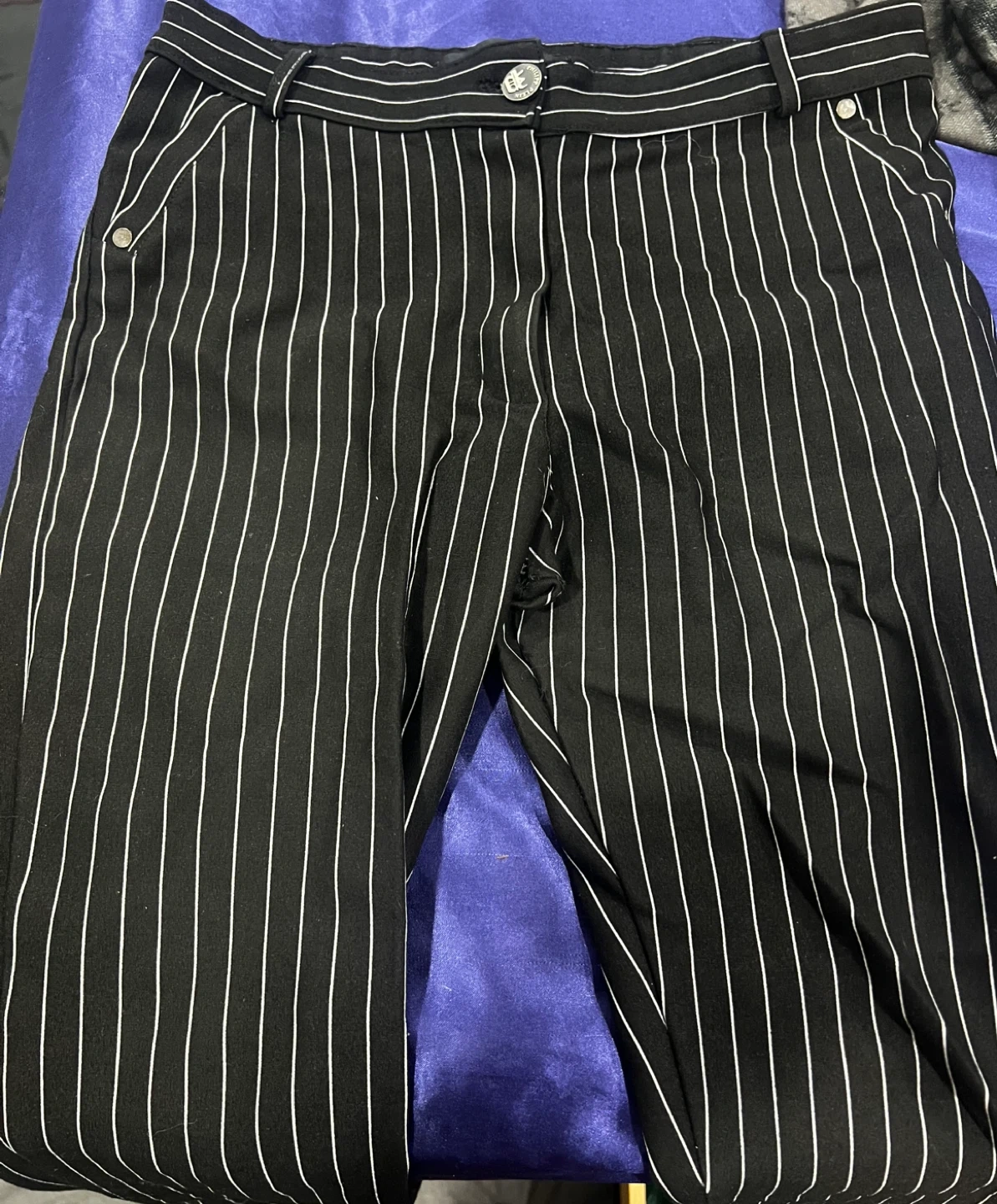 black and white striped pants! They are in great condition and ready for a new owner. They have a stylish look that can be dressed up or down. Perfect for adding a bit of flair to any outfit!