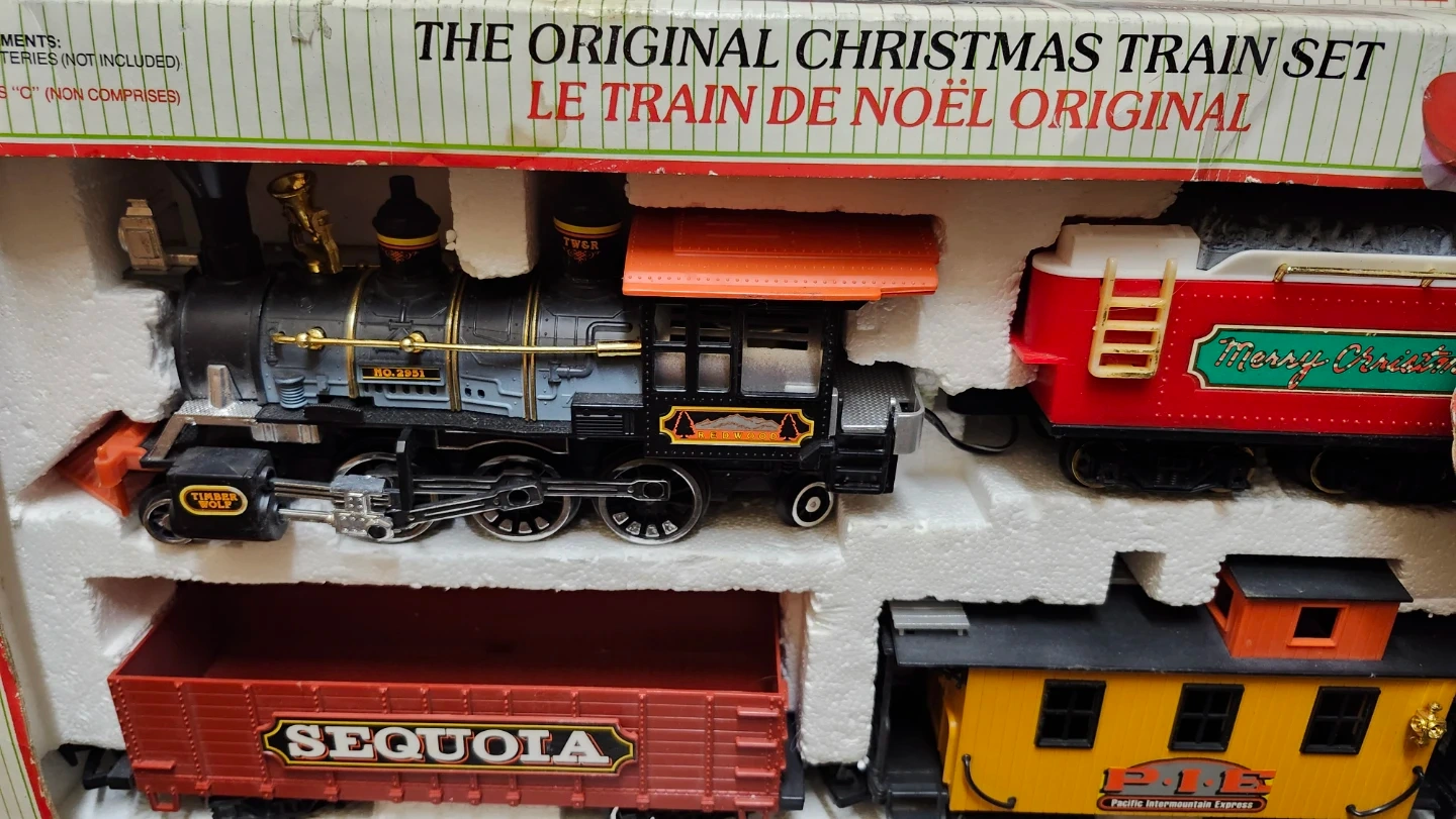 Selling The Original Christmas Train Set! It comes with all the pieces shown in the pictures. This train set is sure to bring some holiday cheer to your home this season It worked the last time it was used. I dont have batteries so pr icing for Chrismas decor.