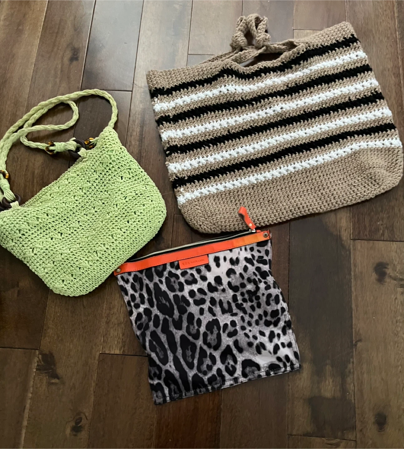 Selling a cute KGB Black Label cosmetic bag! It features a fun leopard print design with an orange zipper in great condition Perfect for storing your makeup or toiletries and 2 shoulder bags that show some signs of wear