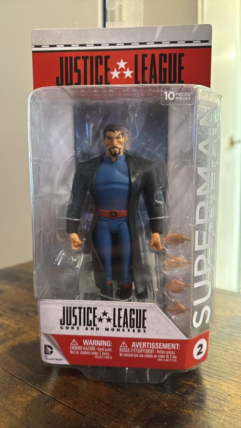 Selling a DC Collectibles Justice League Gods and Monsters Superman action figure! It's in its original packaging and includes 10 pieces. Collect them all!
