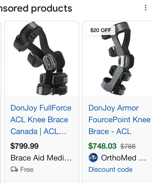 This is a brand new, large DonJoy knee brace specifically designed for the right knee. Perfect for providing support and stability, whether you're recovering from an injury or need extra support during activities. * **Brand**: DonJoy * **Size**: Large * **Intended Knee**: Right * **Condition**: New Only there is small chip you can see it in the photo Pick up from Pickering Compare to over $650 + tax