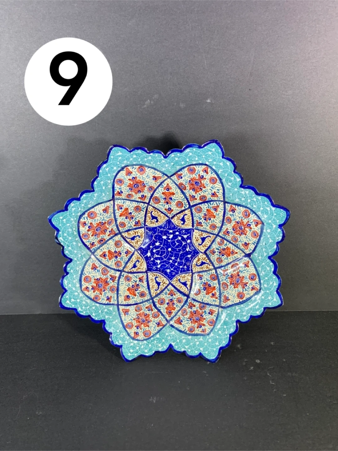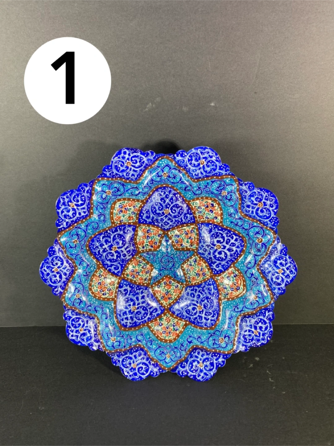 This is a beautiful handcrafted Persian enamel plate featuring intricate floral designs and vibrant colours. Perfect for adding an elegant touch to any room.
