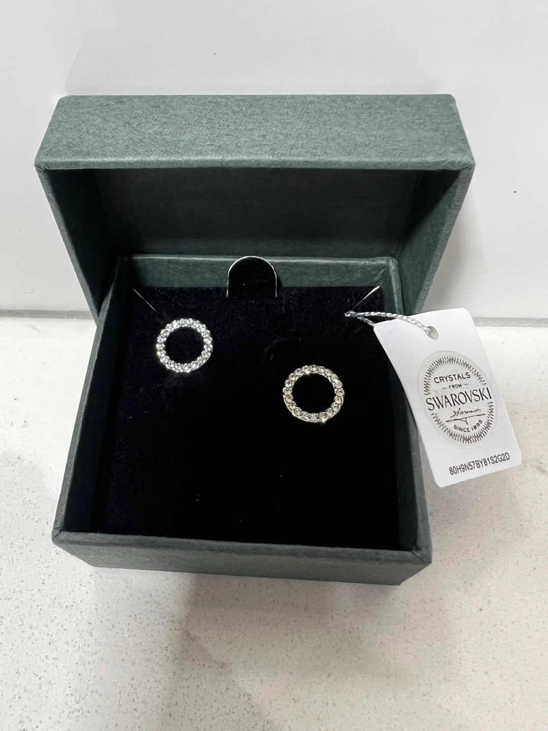 These NIC & SYD earrings are brand new and feature crystals from Swarovski! They come in their original box. The earrings are a classic circle design.