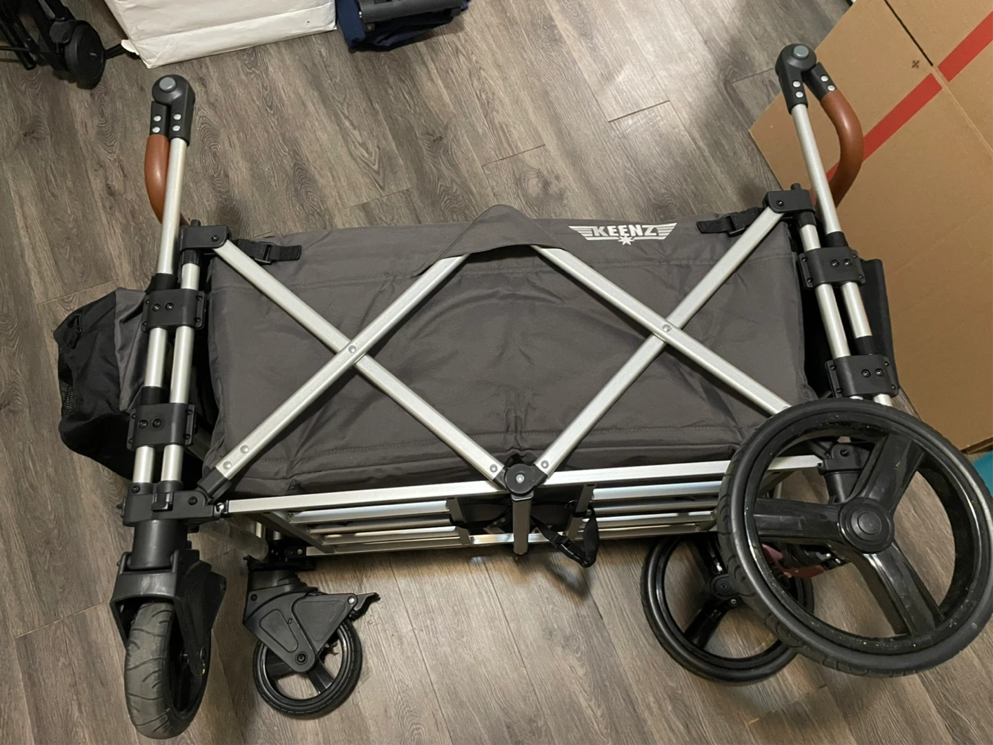 Selling a Keenz stroller wagon in great condition! This wagon is perfect for hauling kids and gear. It features a durable frame and plenty of storage. It's gray and black, and ready for your next adventure!
