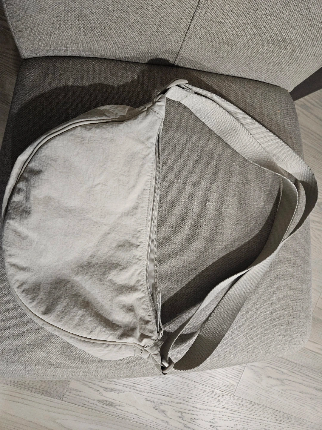 Selling a Uniqlo half moon mini shoulder bag! It's a great lightweight bag, perfect for everyday use. The colour is a neutral beige that goes with everything