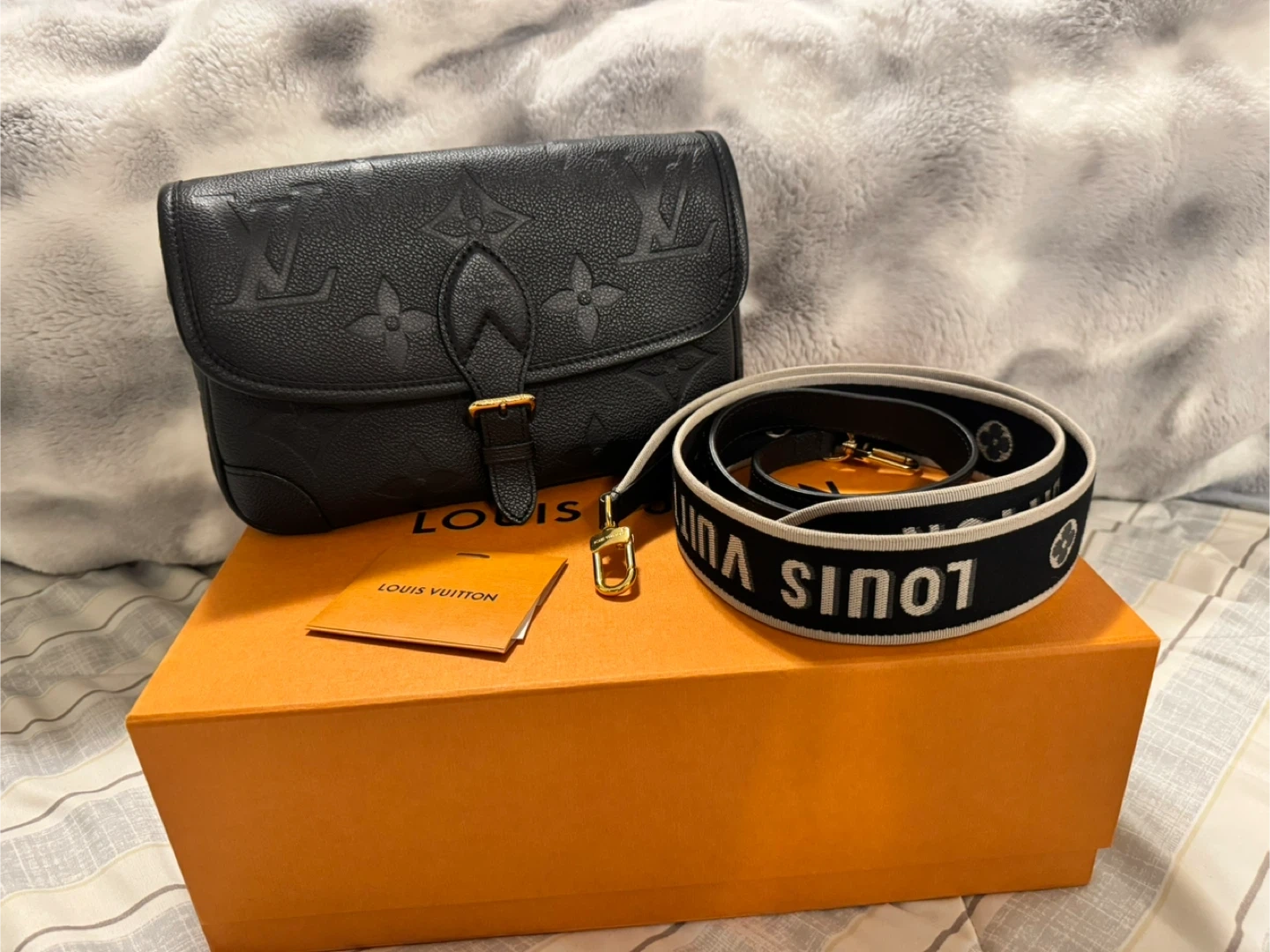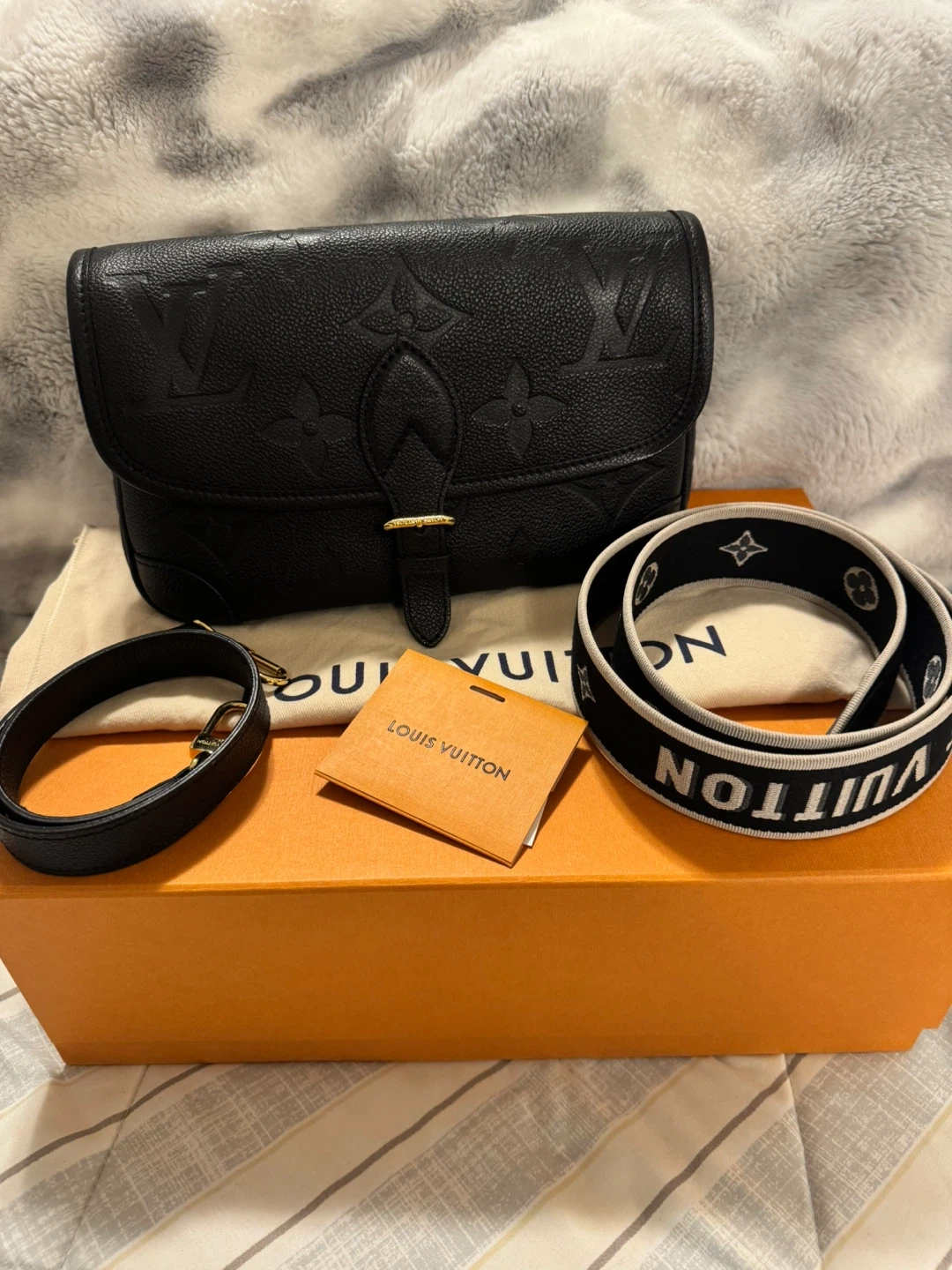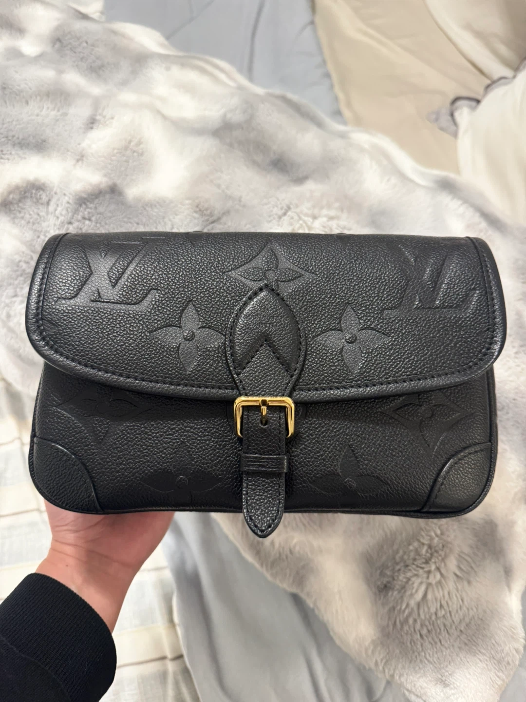 Authentic Louis Vuitton Diane bag in black monogram empreinte leather in like new condition (barely used).