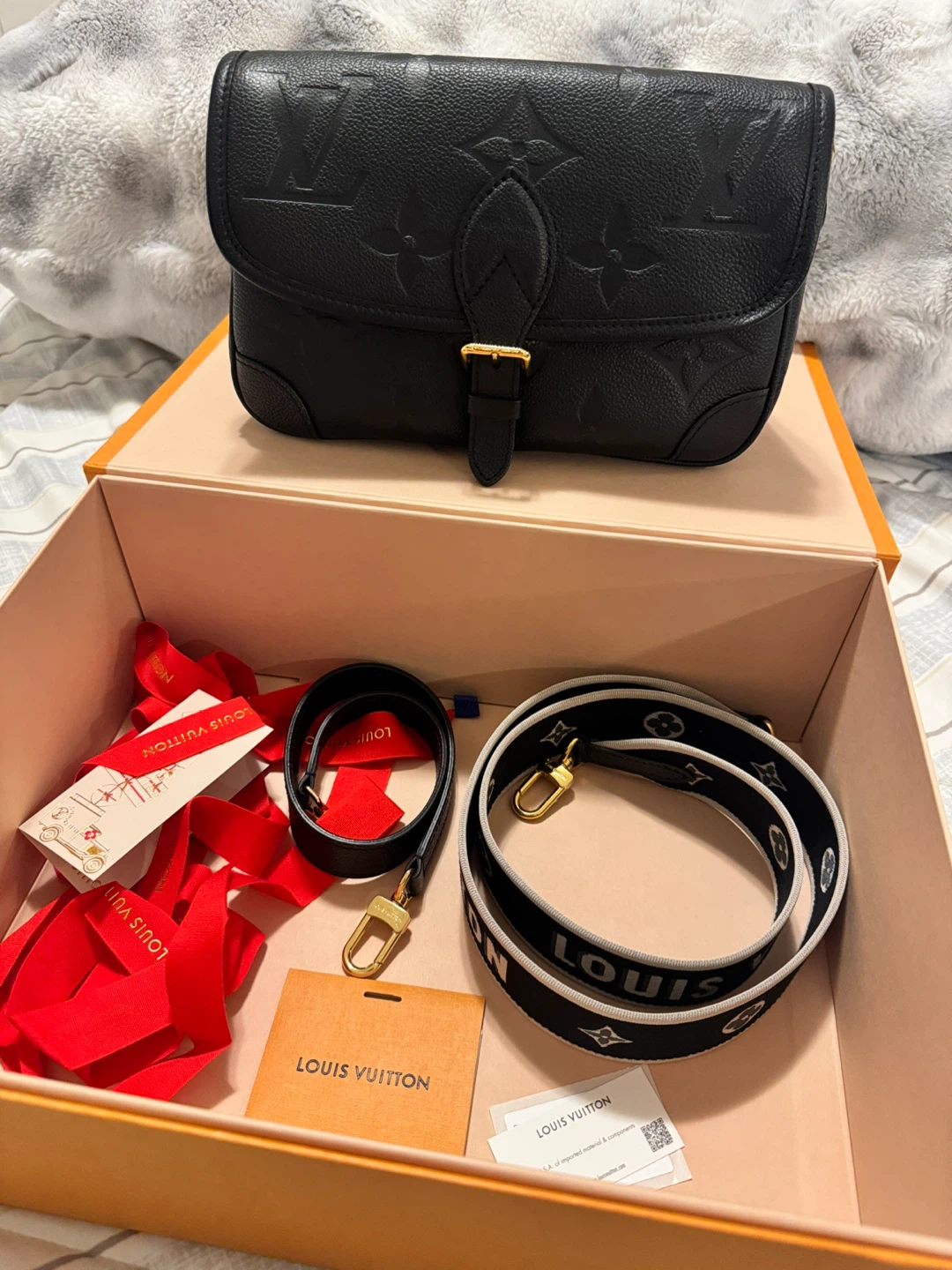 Authentic Louis Vuitton Diane bag in black monogram empreinte leather in like new condition (barely used).