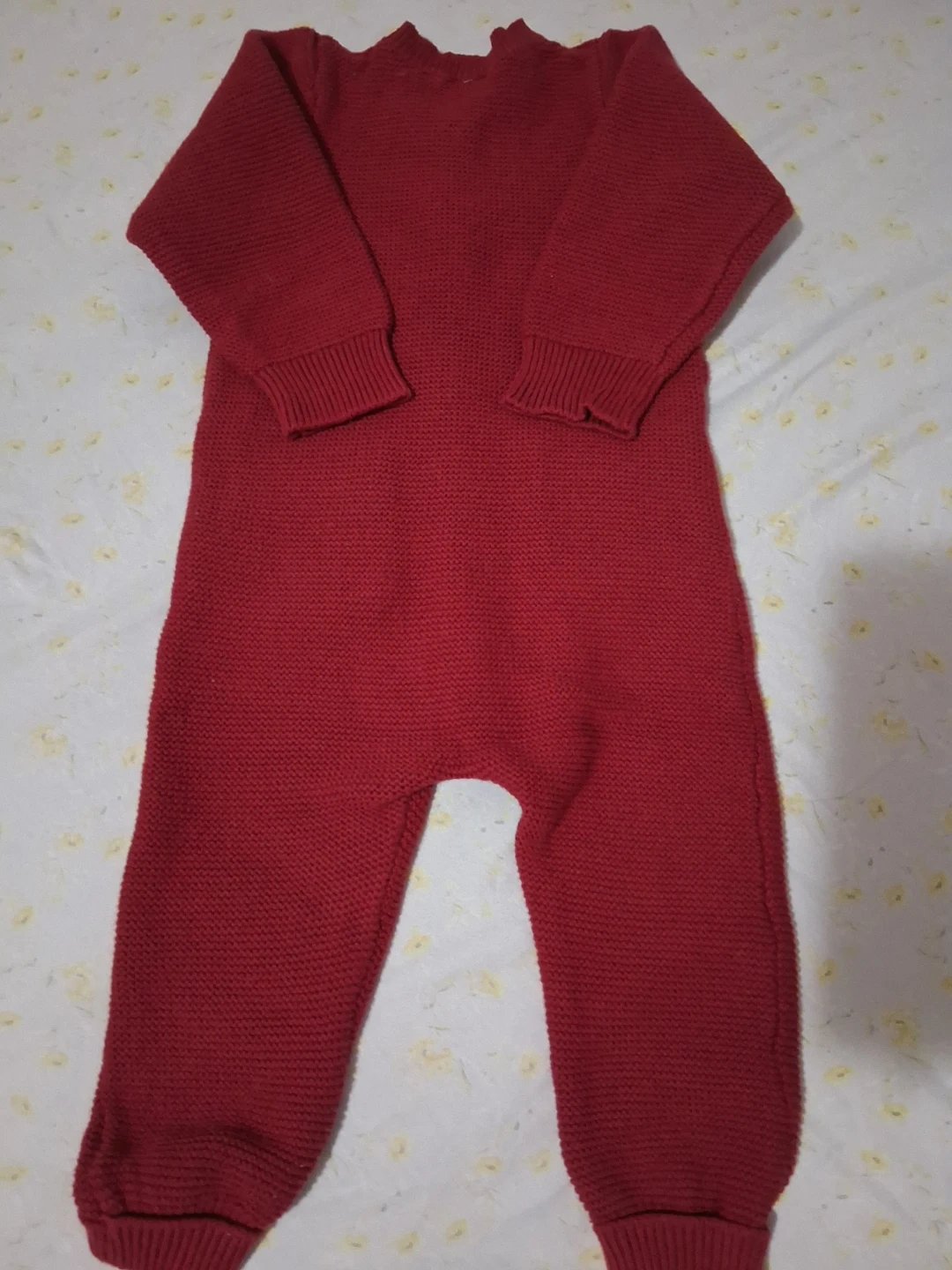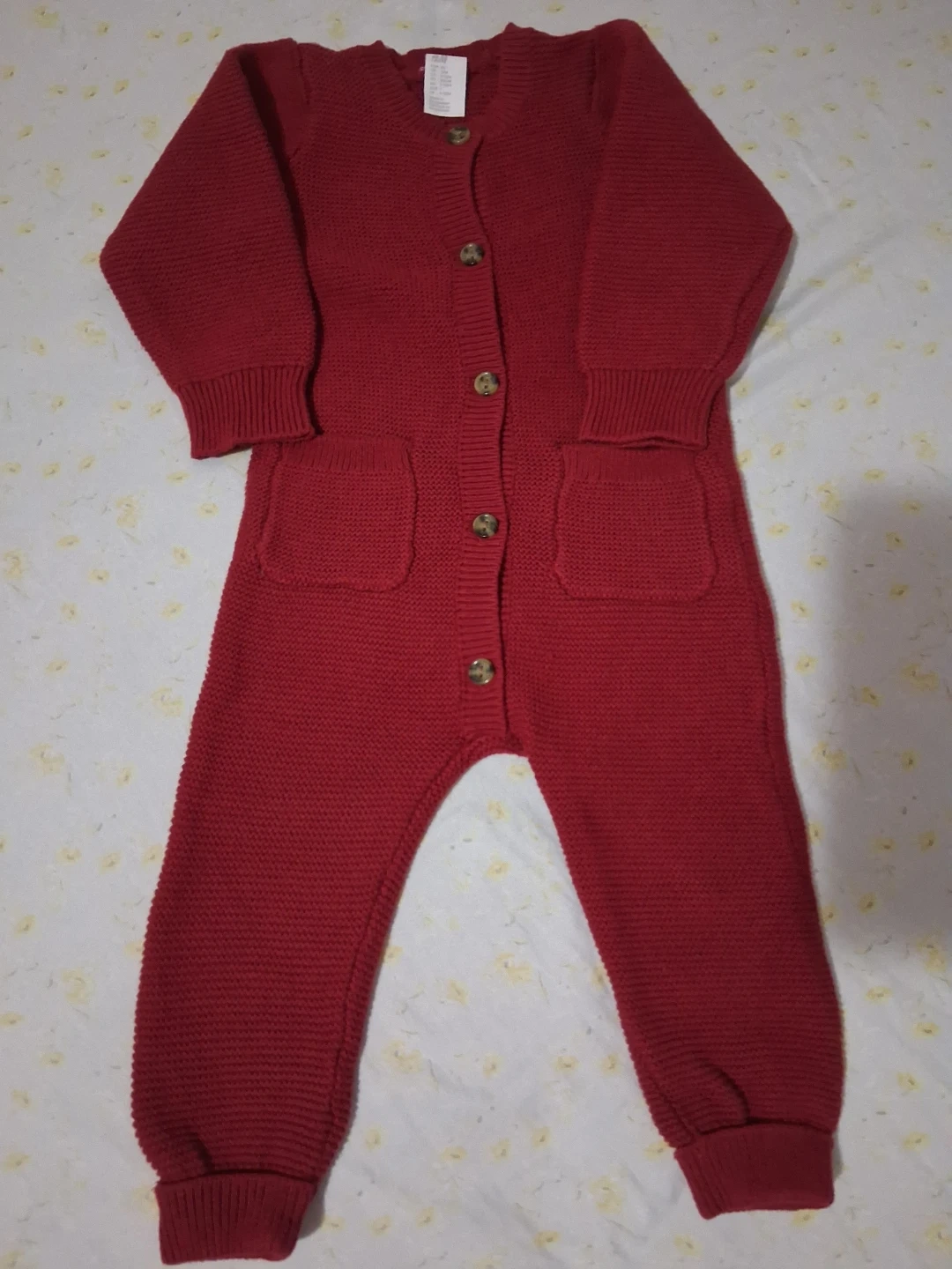 Selling a cute H&M knit romper for boy in size 9-12 months. It's a lovely red colour and in great condition. Perfect for keeping your little one cozy!