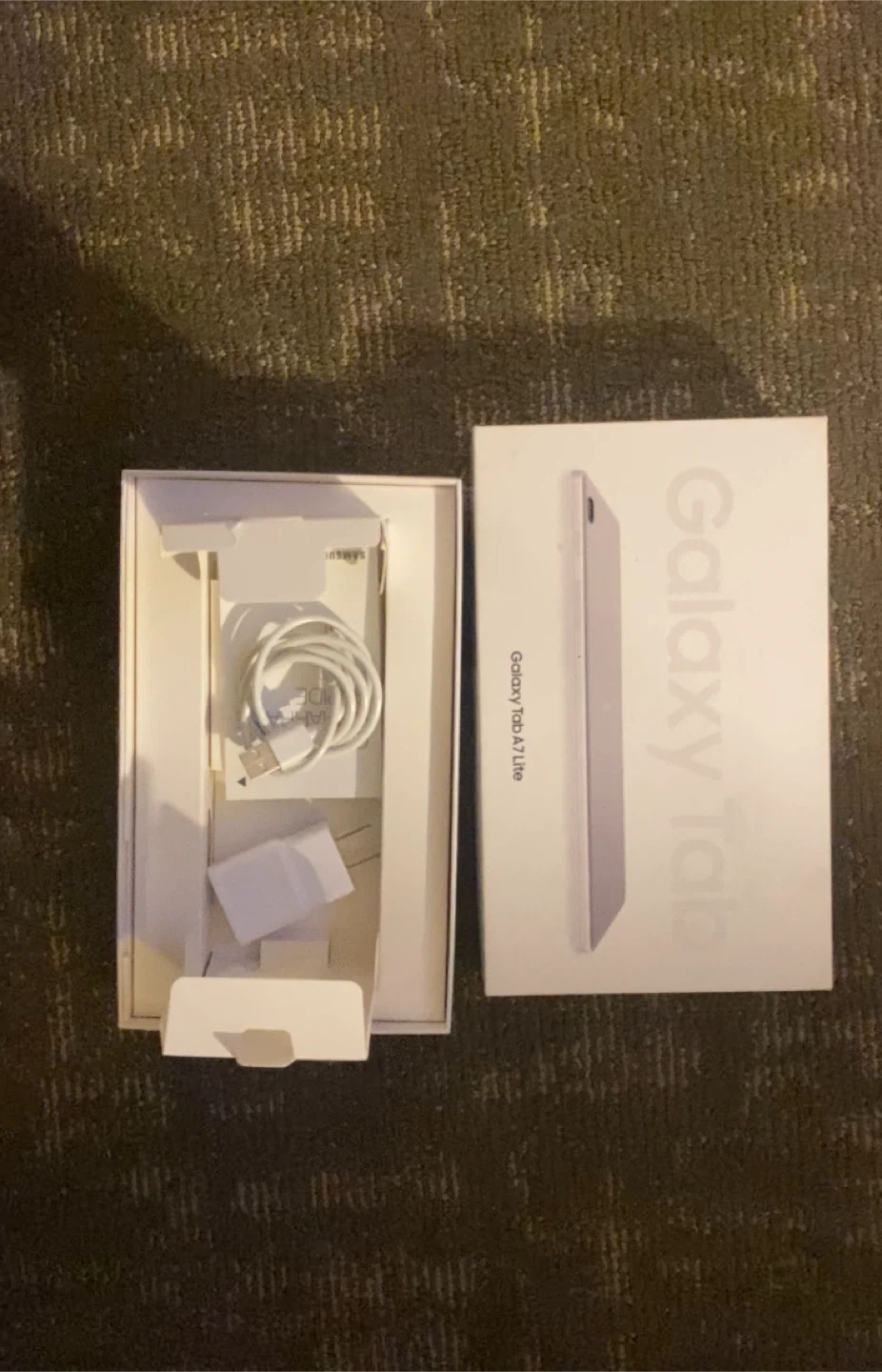 Selling Samsung Galaxy Tab A7 Lite. Comes with the original box and all components: charger & user manual. I don’t remember how much storage it comes with but it has only been used a few times so the battery health is great. The box has a few stains but the tablet has no scratches or dents and has been factory reset, so it’s ready for a new home. ($5 more for the case)