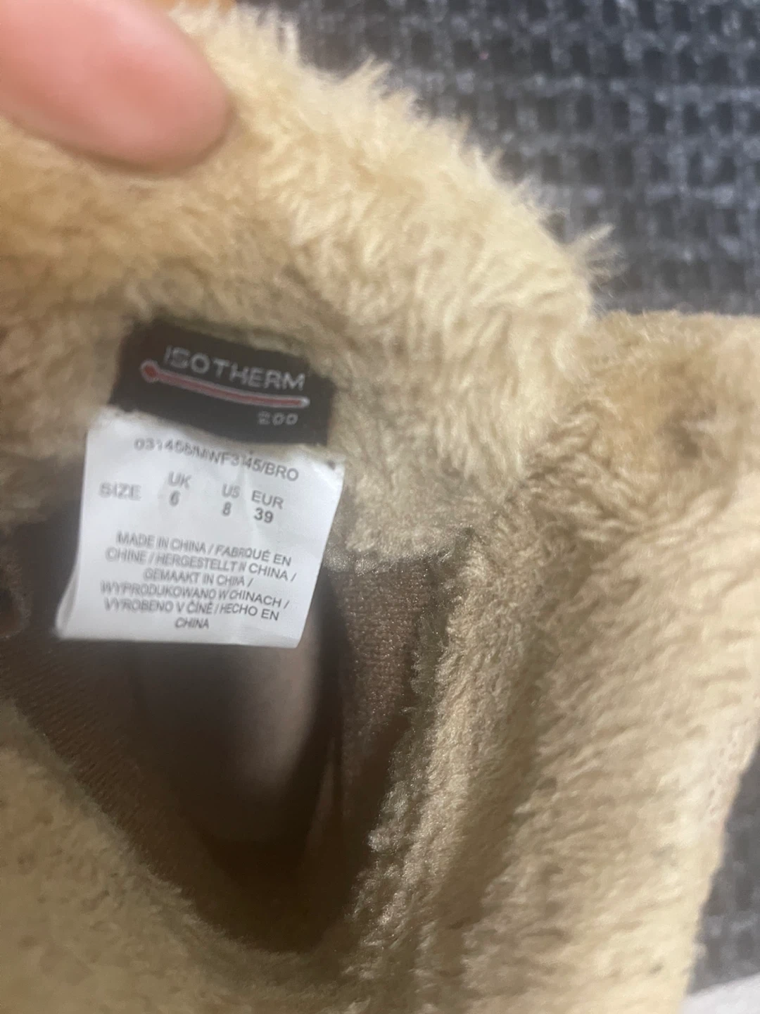 Selling a pair of tan-coloured boots from Mountain Warehouse. They are a US size 8. They have a warm, furry lining, perfect for winter!