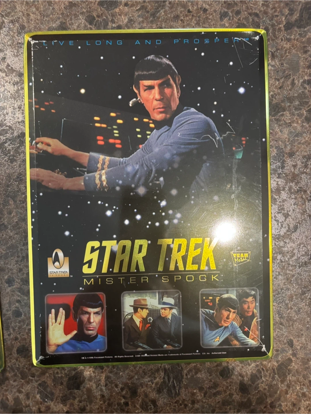 Selling a set of Star Trek set of Metal pictures, featuring Captain James T. Kirk and Mister Spock. These tins are in great condition and perfect for any Star Trek fan or collector
