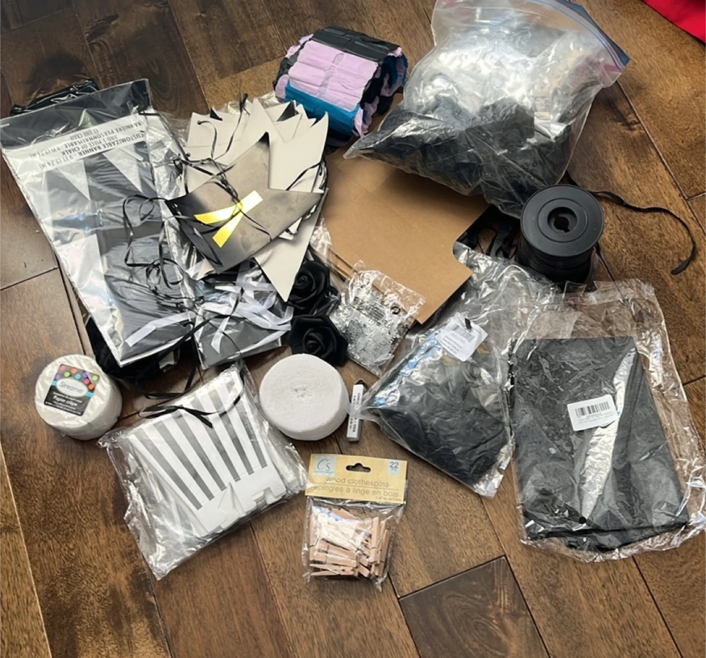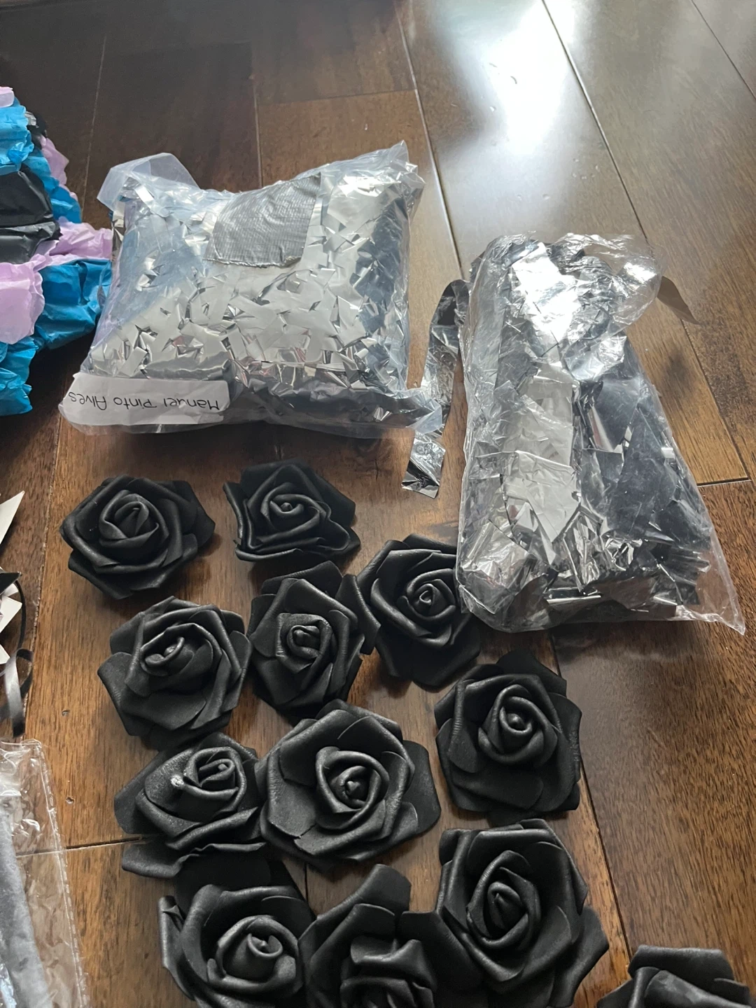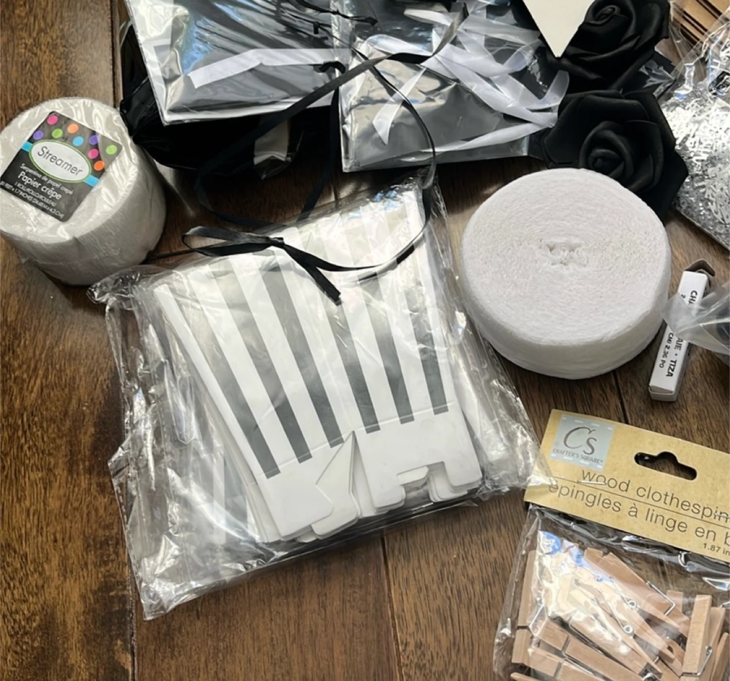 Selling a party decoration bundle, perfect for any celebration! Includes streamers, roses, clothespins, and more. Everything you need to make your party extra special