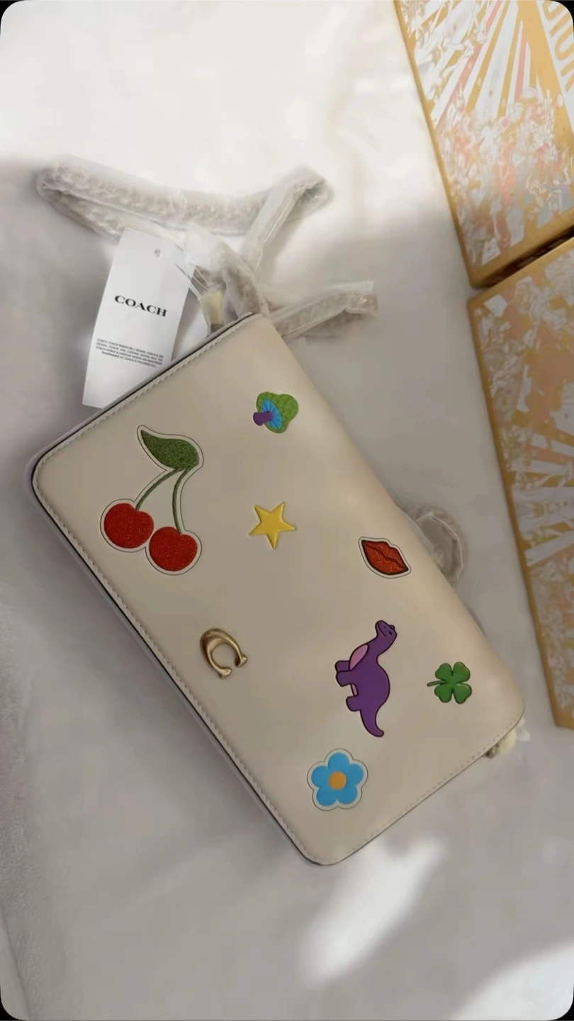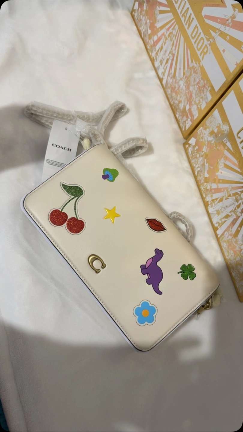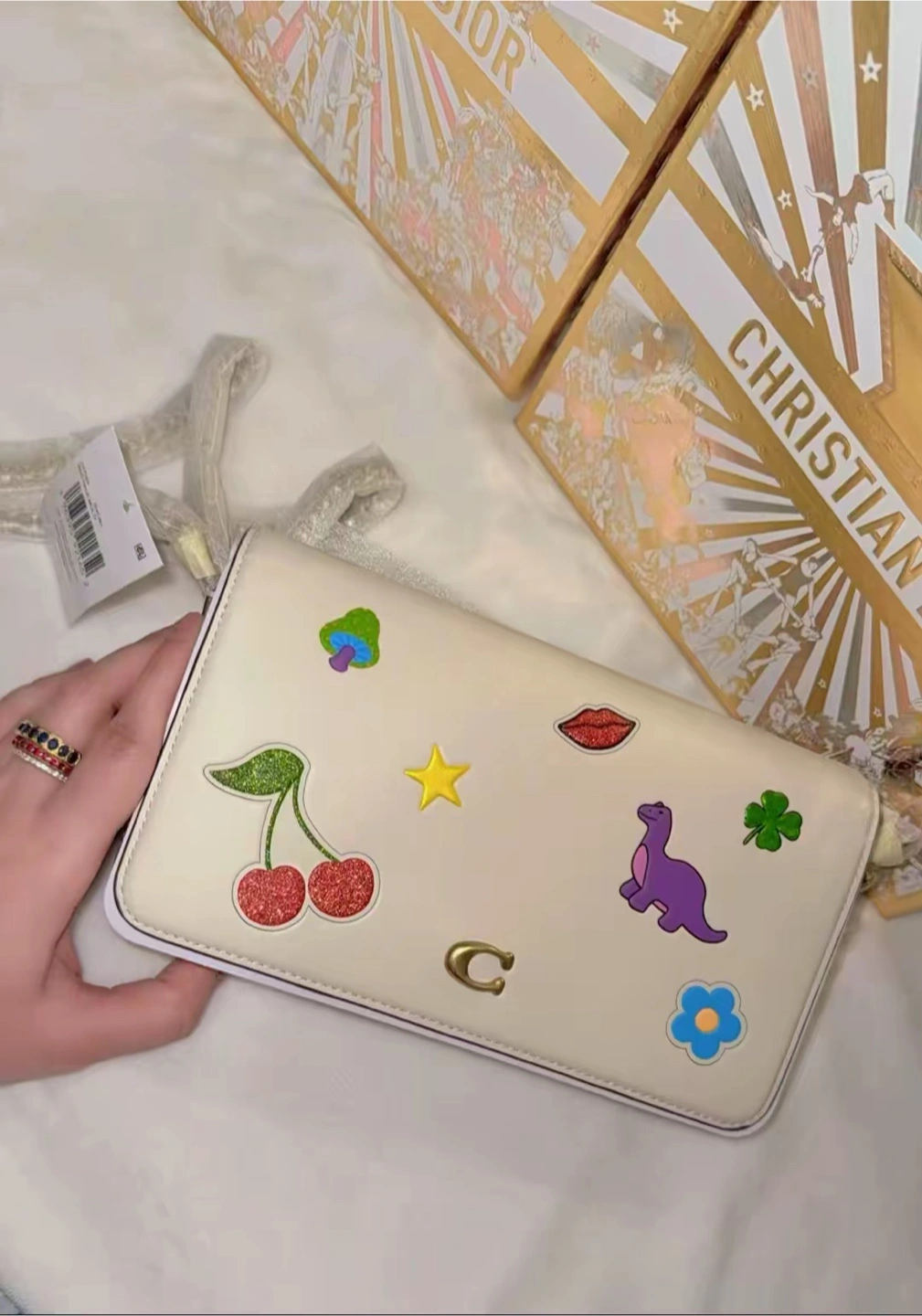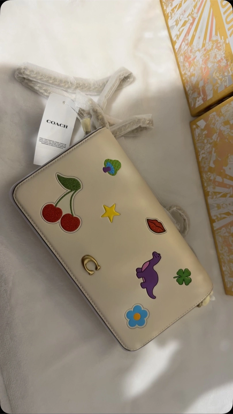 Brand new Coach wristlet for sale! It's a cream colour and has super cute stickers on it. Perfect for carrying your essentials in style!