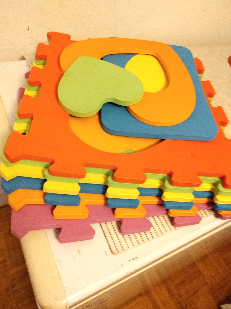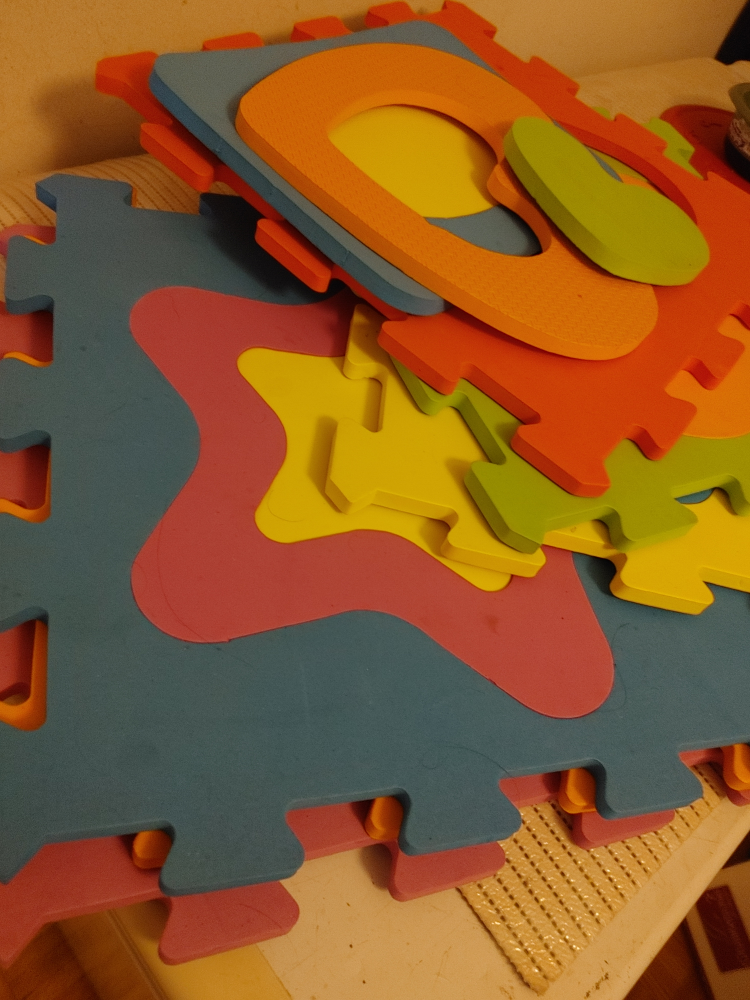Selling a foam puzzle play mat! It's in great condition and ready for a new home. Perfect for kids to play on and learn shapes and colours