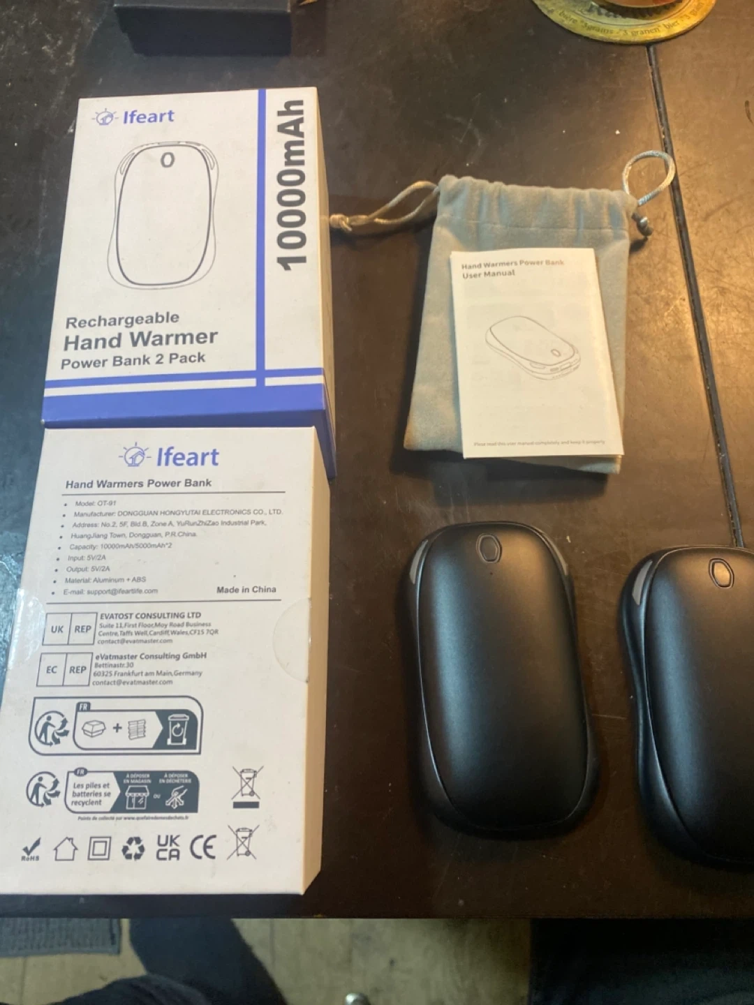 I'm selling a pair of Ifeart rechargeable hand warmers that also function as a power bank! They come in their original box.