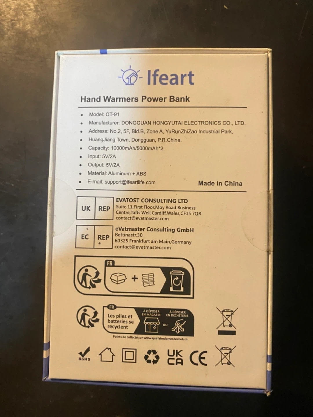 I'm selling a pair of Ifeart rechargeable hand warmers that also function as a power bank! They come in their original box.