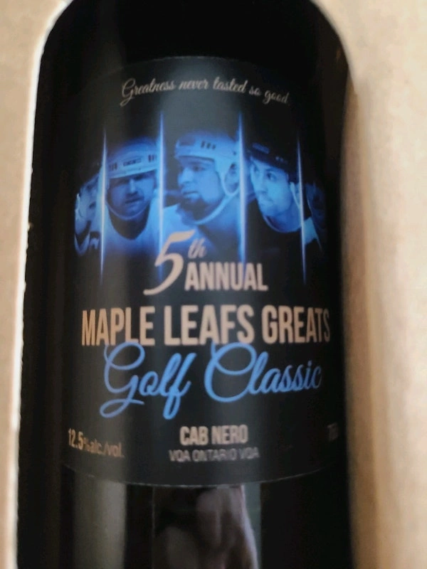 Selling my autographed Toronto Maple Leafs Greats Golf Classic Wine plus autographs from Doug Gilmore, Wendle Clarke, Rick Vive, Darcy Tucker, and Darryl Sittler. No clue how the wine is, but there is a Cab Nero and a Pinot Grigio. I have photos of me with the players to prove authenticity. Regards,