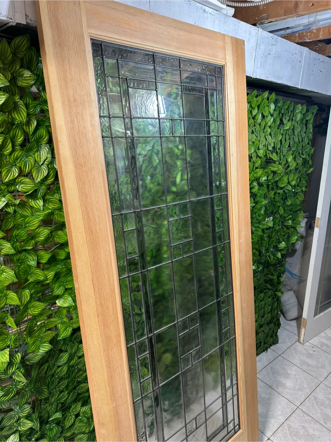 Selling a wooden framed glass door. It has a unique design and could be a great addition to your home. Please message me if you are interested in this door!