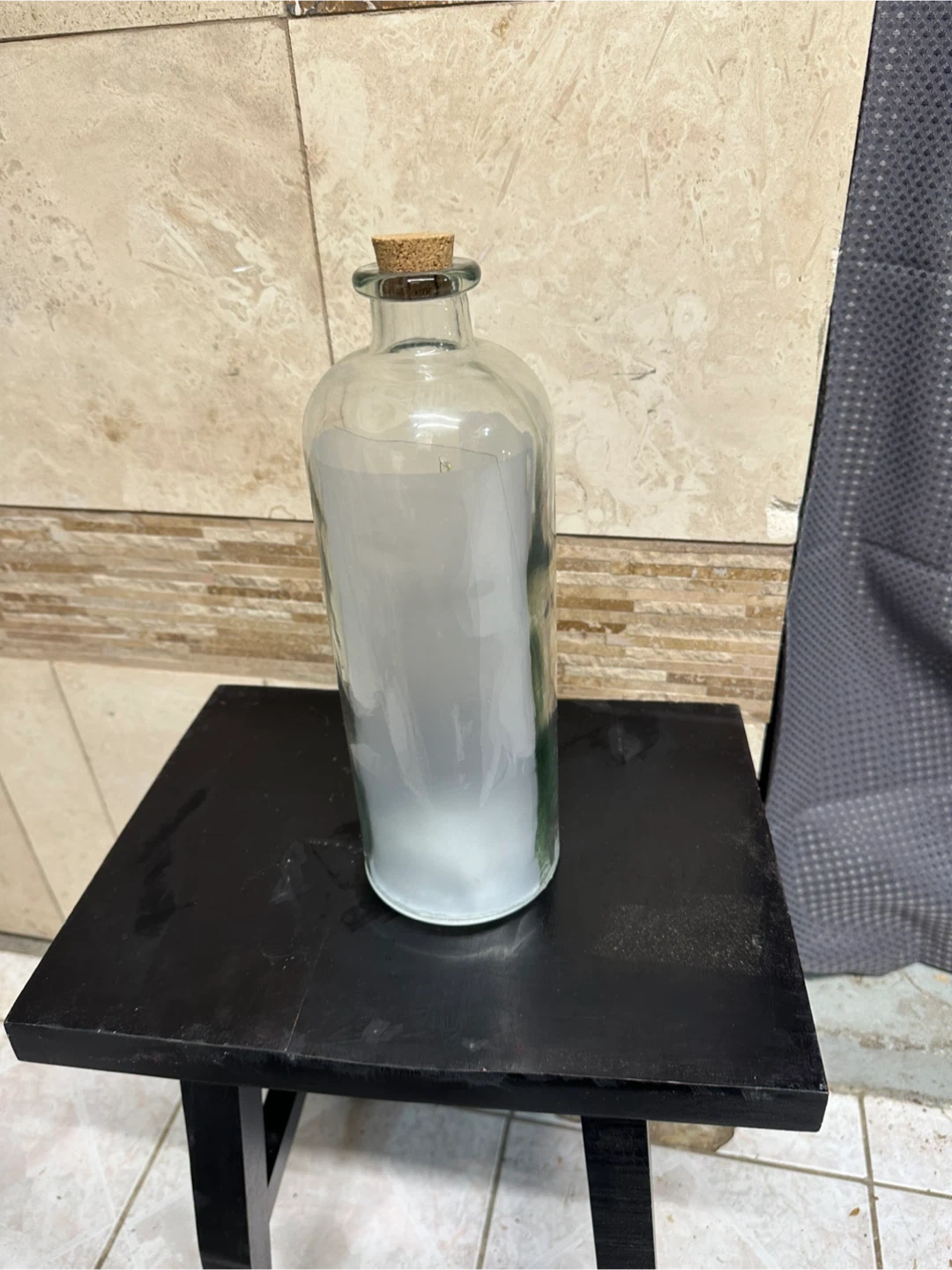 I'm selling a clear glass bottle with a unique star design inside. It's in great condition and would make a lovely decorative piece for your home. It's perfect for adding a touch of whimsy to any room!
