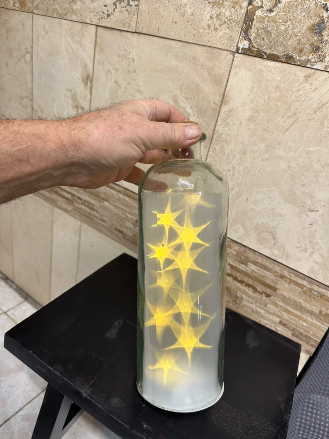 Glass Bottle with Illuminated Reflection LED Lights Star Design