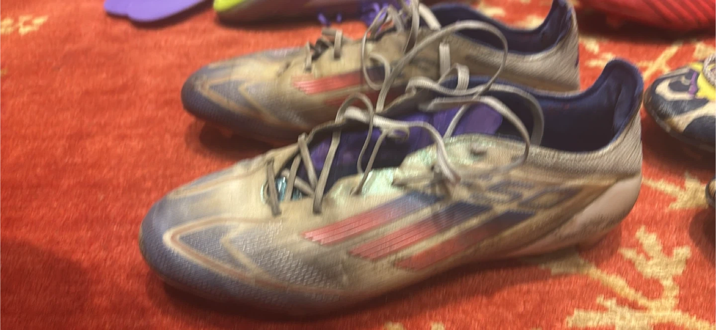 6. White Puma mix color PUMA future Ultimate size US 8.5 - $30 ( ripped on side)