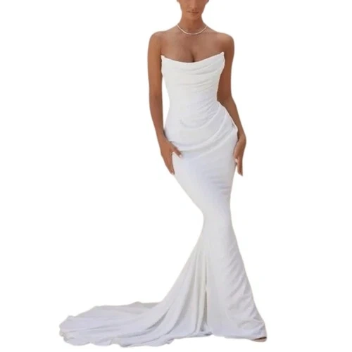 The elegant draping of 'Esmee' is truly a masterpiece. It's made from a lustrous smooth satin that's draped around a fully corseted bodice for the ultimate in cinching and support. The structured sweetheart neckline is ultra flattering and the inner layers are corseted for maximum support and lift. The beautifully draped skirt falls away to a sweep train to add further drama to your entrance. Beautiful hour glass shape. This is sold out everywhere. Located in Toronto. Excellent condition, no stains, no alterations made. Fits smaller, I sized up. My measurements: Size 34C bust, 5'1", 26" waist. See photo measurements suggested on website: Bust 92-98cm, waist 71-77cm, hips 97-103cm. Corset style and adjustable so you can cinch yourself. Can fit small- medium.