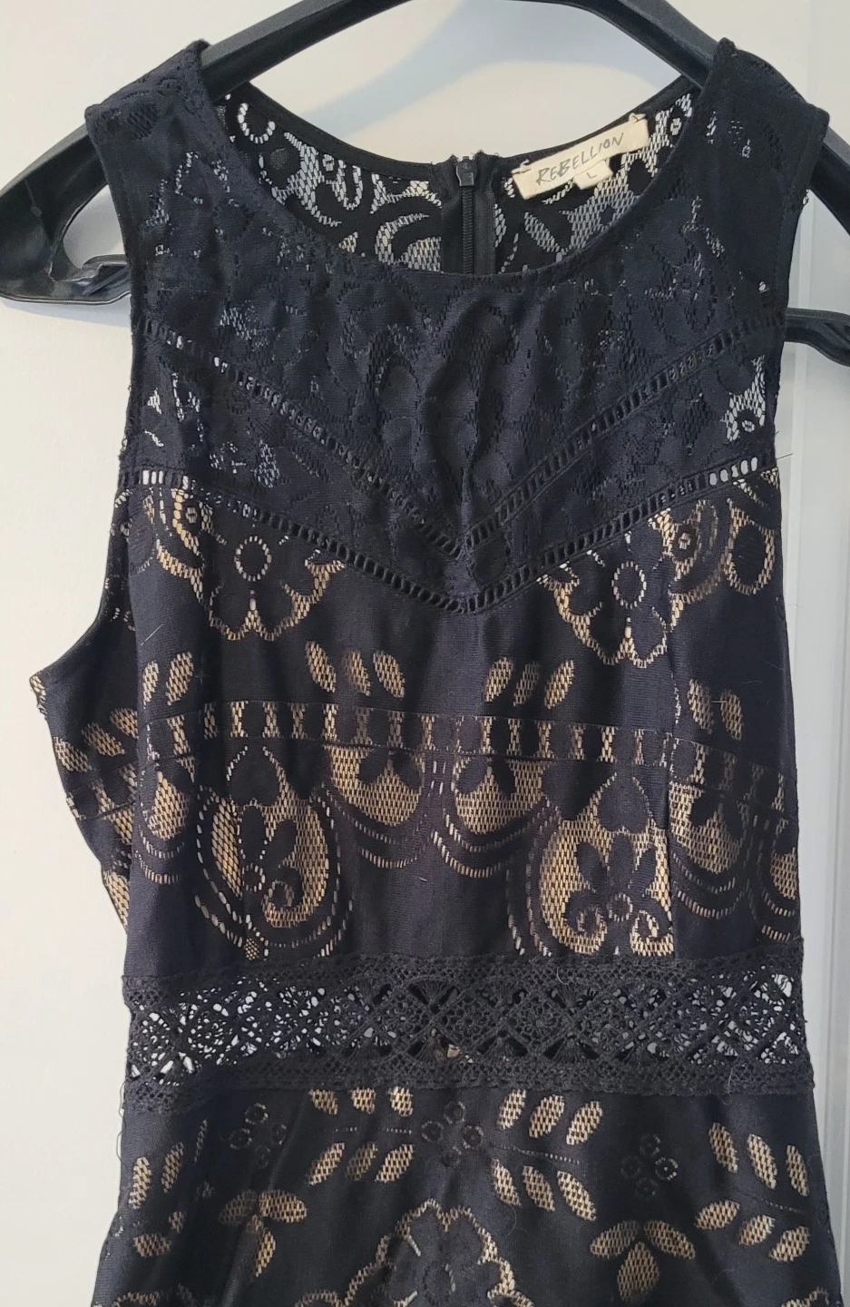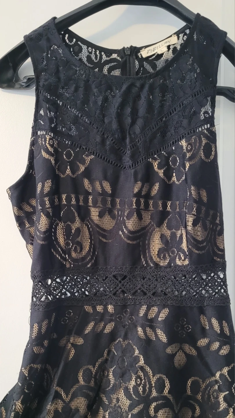 Selling a beautiful black lace dress from Rebellion! It's in great condition and would be perfect for a night out or a special occasion! The intricate lace detailing adds a touch of elegance to the dress