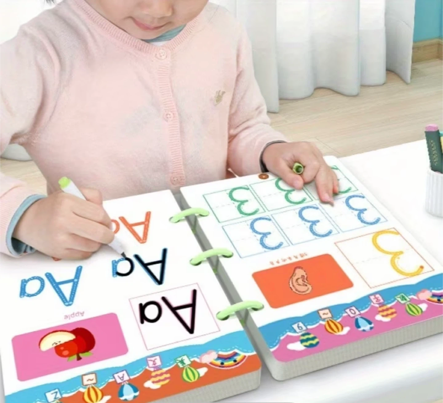 This reusable writing practice book is perfect for little ones learning their ABCs and 123s! It comes with whiteboard pens and a board eraser so your child can practice again and again. It's easy to wipe clean, making it a great learning tool for home or on the go! 33 pages