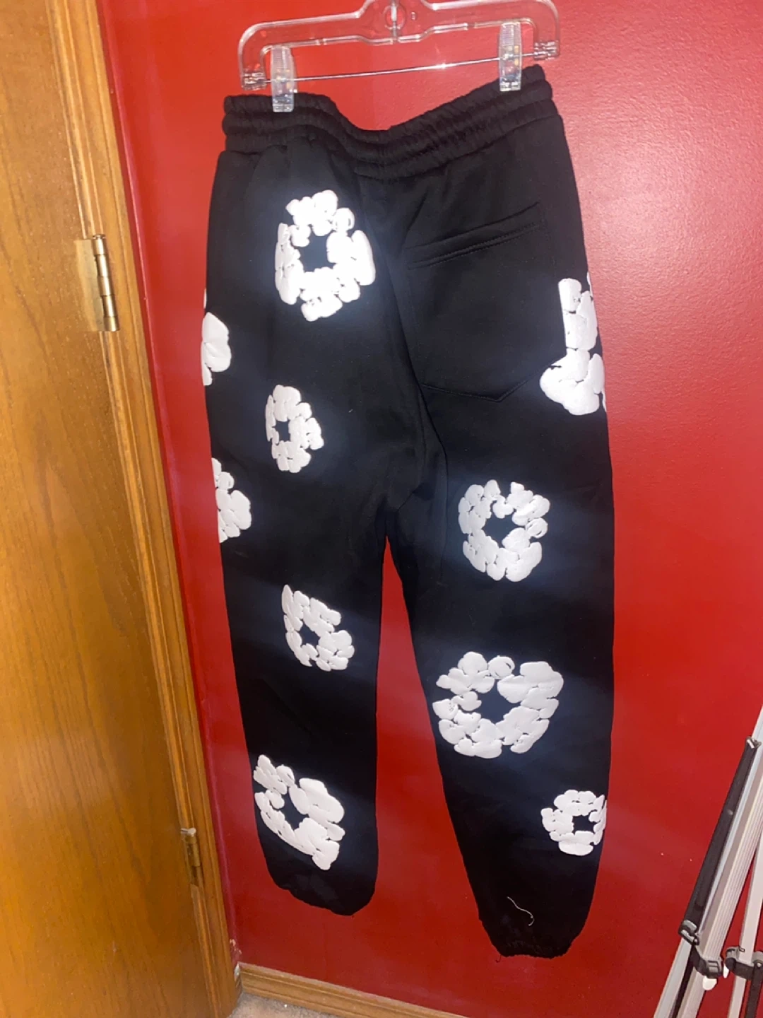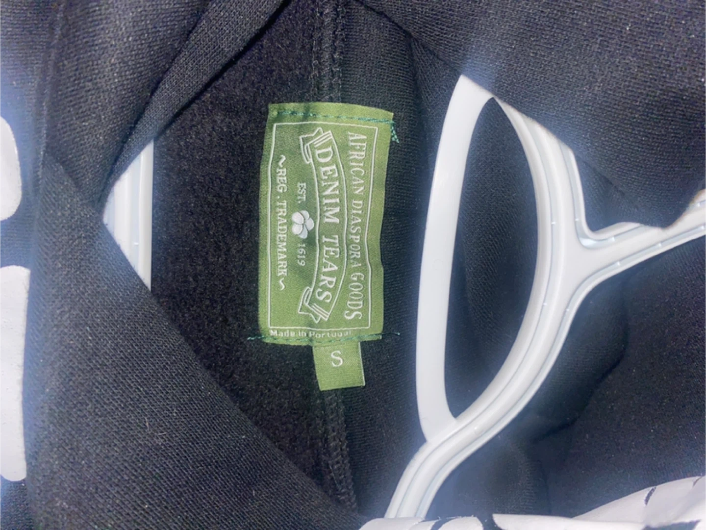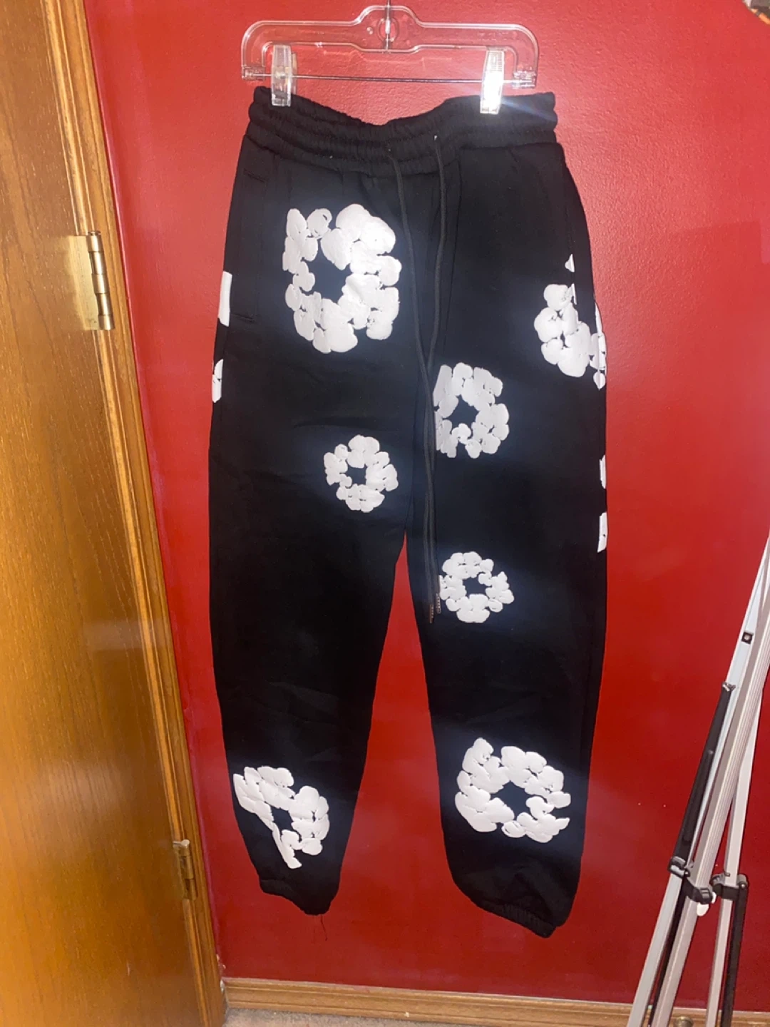 Selling a denim tears hoodie and sweatpants color is black and white quality is 1-1 hoodie is a small but fits like a medium comes with tags but they are separate because worn once
