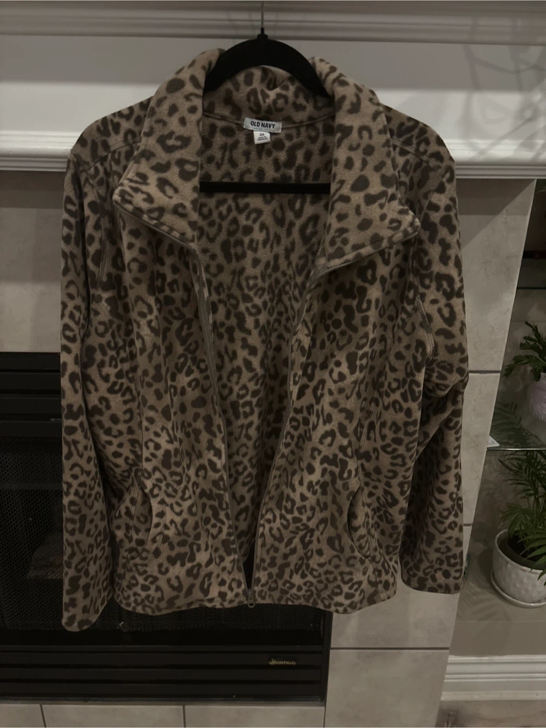 Cozy up in this Old Navy fleece jacket! It features a fun leopard print and a comfortable, relaxed fit. Perfect for layering on those chilly days or just lounging around at home. It's in great condition and ready for a new home! Size xxl pick up walnut grove Langley is fitting like xl