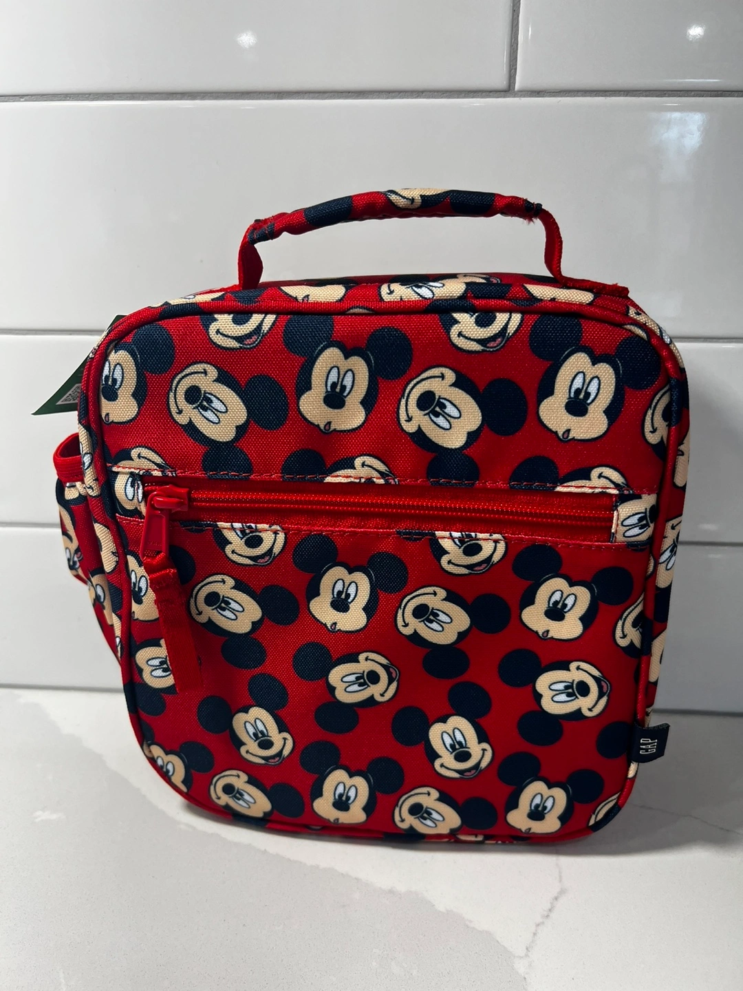 This new Gap Kids lunch bag features a fun Mickey Mouse design! It's in one size and has a vibrant red colour. It’s perfect for keeping your little one's lunch cool and stylish