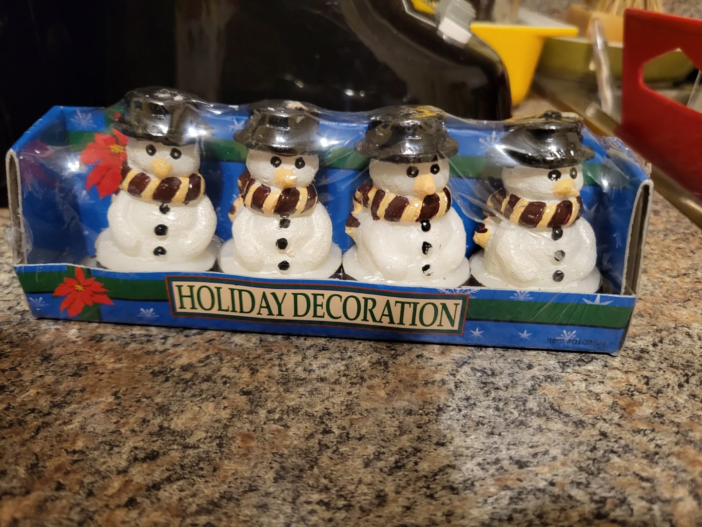 I'm selling a set of four holiday decoration candles still in the original packaging! The candles include Christmas trees, snowmen, and Santa Claus figures. They're perfect for adding a festive touch to your home this holiday season. Price is for each pkg of 4. Please specify which you are interested in. Limited amount of each.