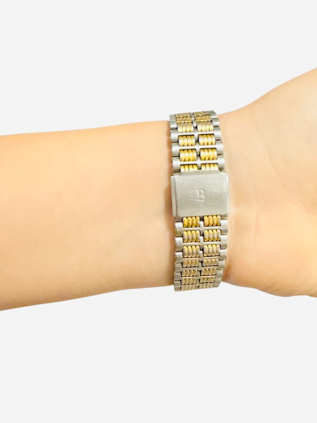 • Band: Two-tone stainless steel expansion band (silver & gold)