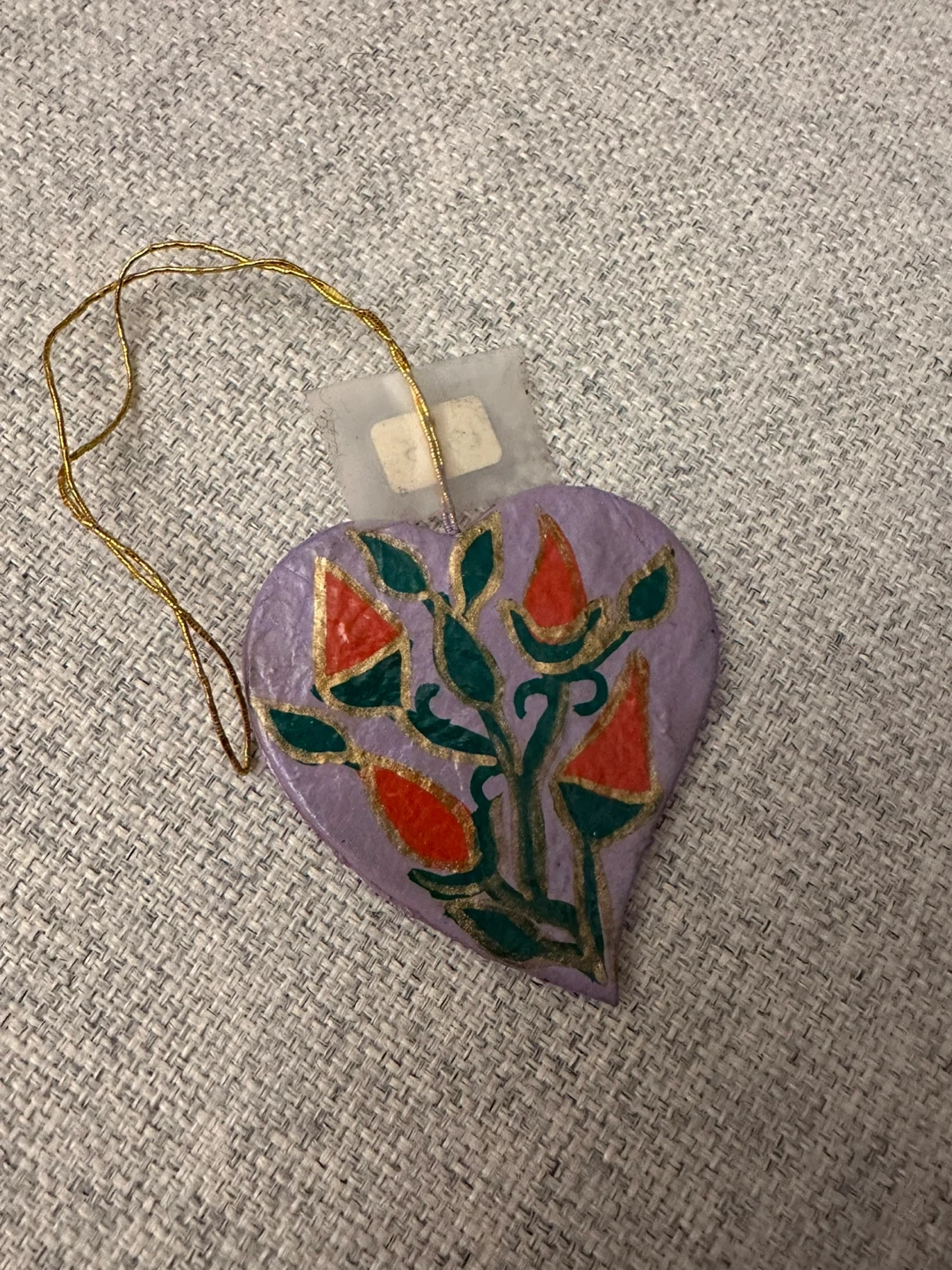✨ 1 hand-painted paper maché ornament — the kind that looks like it belongs in a cozy little art gallery. $3.50