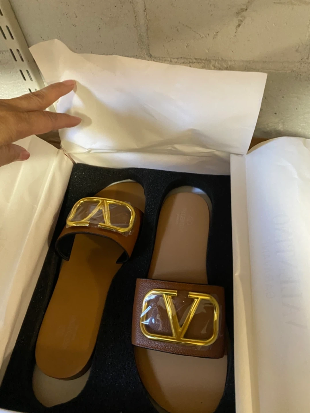 These Valentino Garavani slides are in great condition and come with the original box! They're a size 37 and feature the classic Valentino logo. Perfect for adding a touch of luxury to your everyday look!