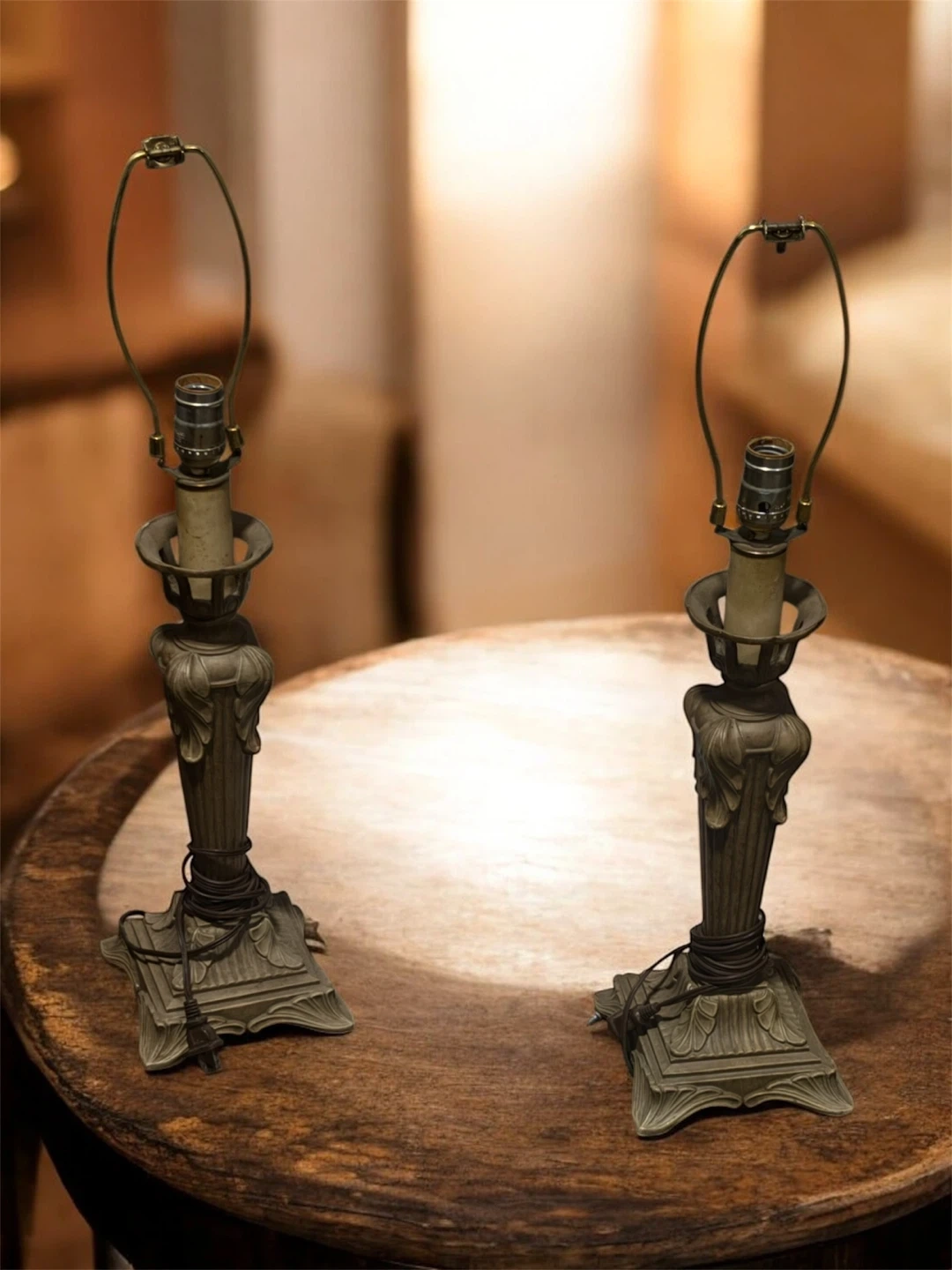 Selling a pair of vintage-style lamps! They have a really unique look and would be a great addition to any room. They are in good condition and ready to use