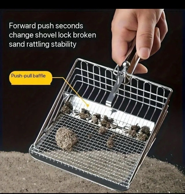 Brand new. Price firm. $15 each. New upgraded cat litter shovel. Effective screening of smaller particles. Features a round hook and push-pull baffle. Available with either a stainless steel or wooden handle. The Sixth Generation Controller Made Of Golden Material, A Large Cat Litter Scoop With Fine Holes, Made Of Non-stainless Steel, A Magical Tool For Scooping Bentonite Mineral Cat Litter, Suitable For Home Use And Sustainable.