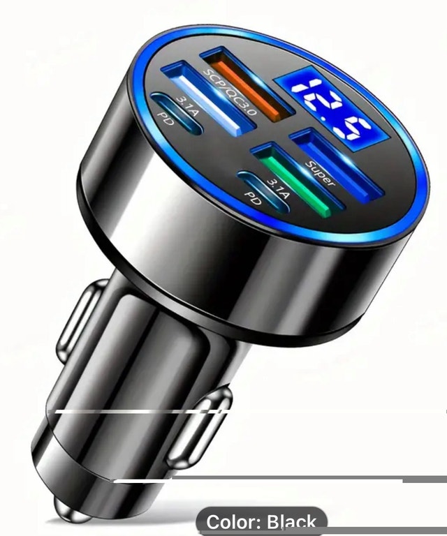 Brand new, each one $9. Last one. Car Charger With QC3.0 Fast Charging, 1 To 6 Multi-functional Car Adapter With PD Flash Charging And Digital Display