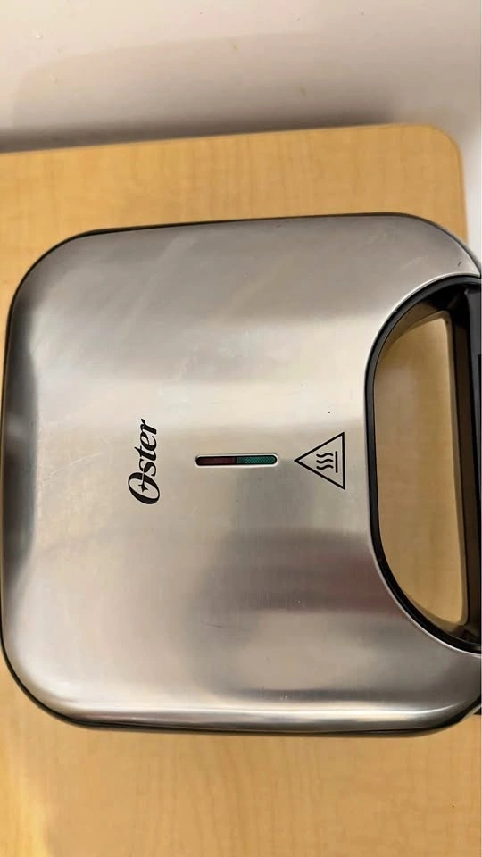 Gently used Oster sandwich maker in good working condition. Ideal for grilled sandwiches, paninis, and quick snacks. Heats up fast and cooks evenly.
