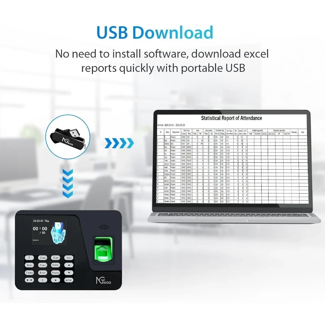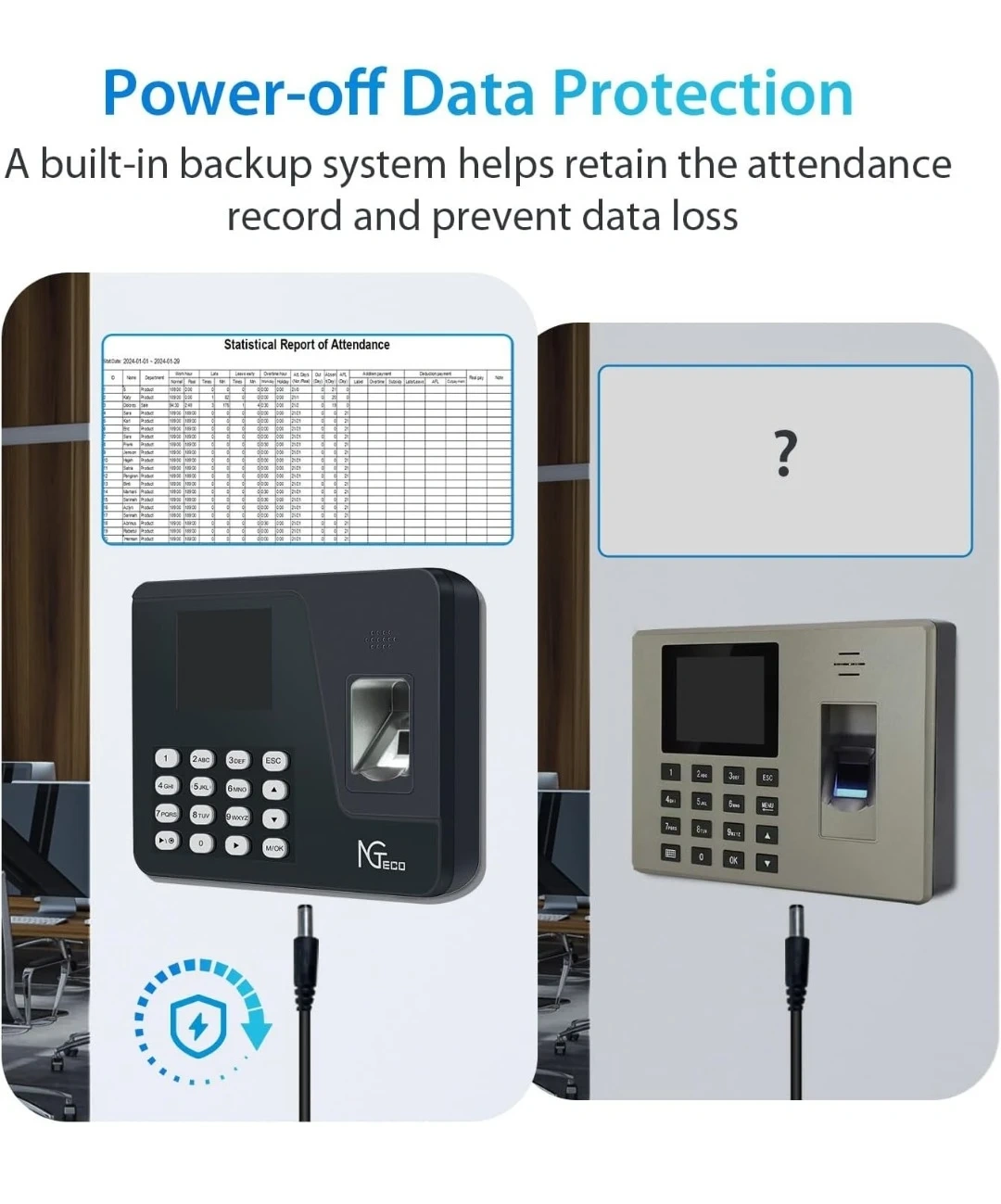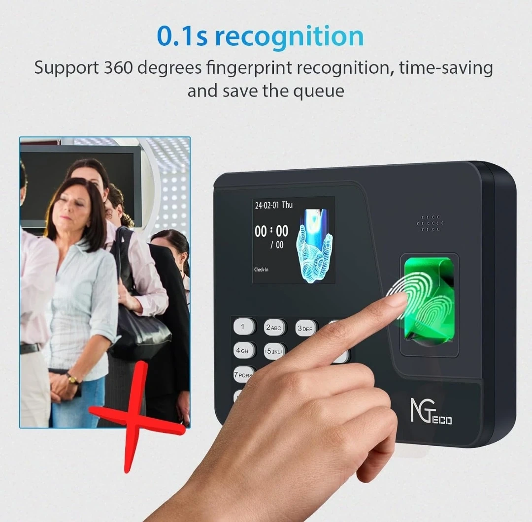 NGTeco Fingerprint Time Clock for Small Businesses, Supports Shift Schedules, Standalone Time Card Machine with No Monthly Fees, No WiFi Required
