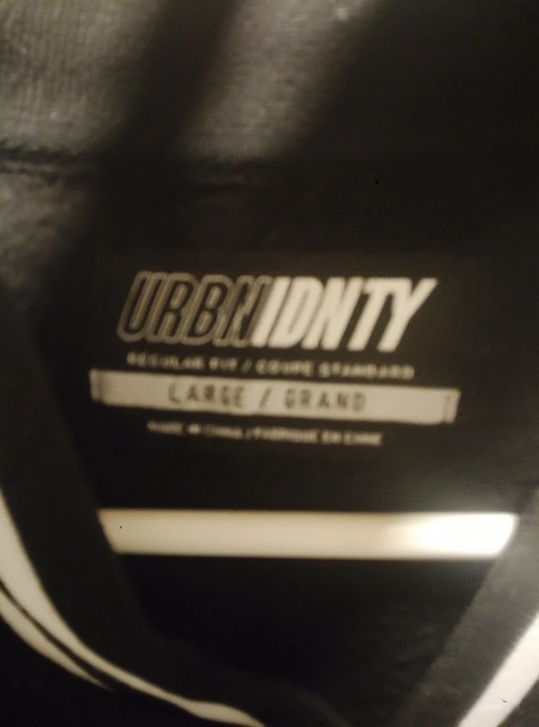 Selling a cool URBRIDNTY bomber jacket with a 'Rebel' design on the back. It's a size large and has a regular fit. The jacket features a black body with white accents on the collar, cuffs, and hem. Perfect for adding a bit of edge to your wardrobe!