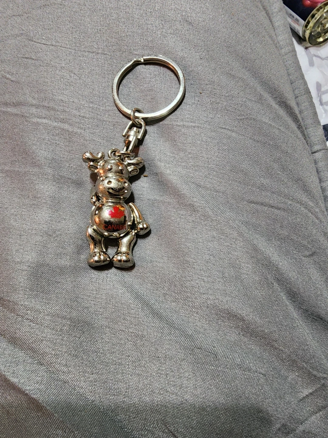 Selling a cute Canada moose keychain! It's in great condition and has a little Canadian flag on its belly. Perfect for adding a touch of Canadian pride to your keys or backpack